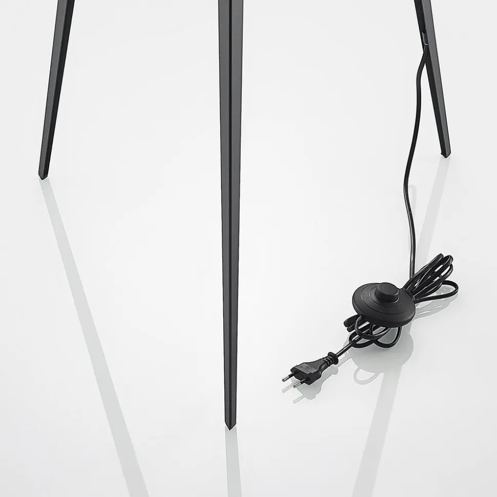Lindby gulvlampe Thoralf, stativ, svart, tekstil, Ø50cm
