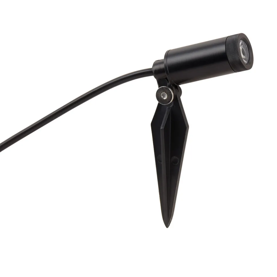 sett med 4 jordspydlys for målrettet belysning i hagen Heath jordspydlyssett består av fire LED-spotter, en fireveis pluggliste, en driver med tilkoblingskabel (konturplugg), fire jordfester og fire jordspyd. På denne måten kan det praktiske settet enkelt kobles til en eksisterende utendørs stikkontakt, uten at det er nødvendig å foreta noen tilkoblinger. Spottene kan enten festes til bakken med de runde fotplatene eller stikkes ned i bakken med jordspydene.