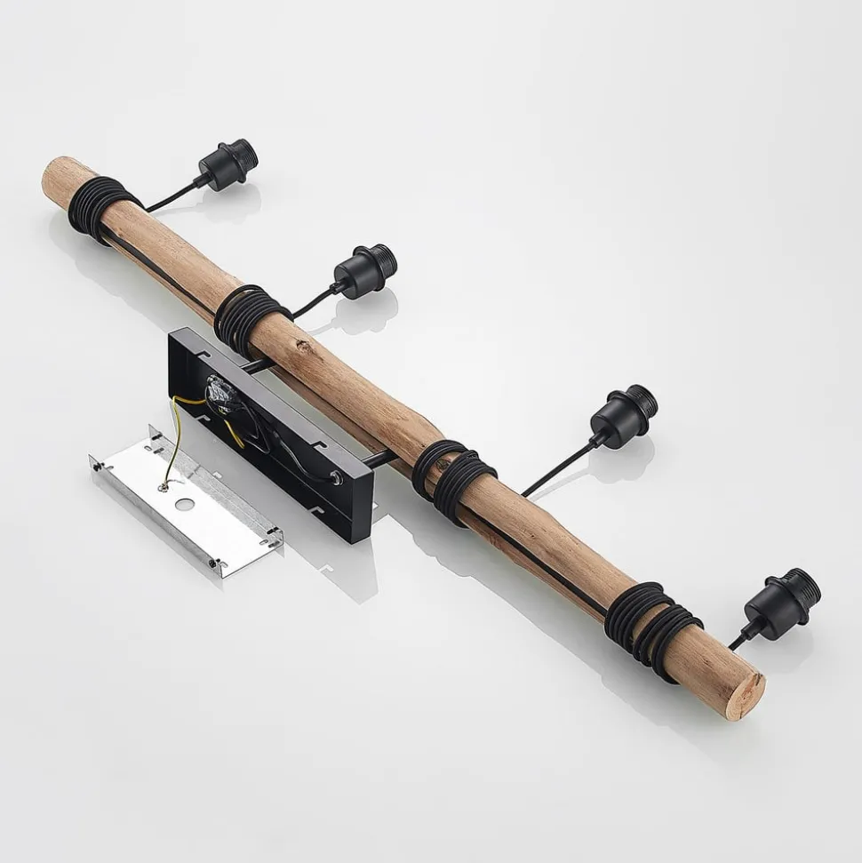 Amilia pendellampe med fire lampeskjermer i tekstil på en trebjelke En svart, en grå, en beige og en brun skjerm i forskjellige former og størrelser og en lang stang av eukalyptustre på en baldakin av metall – denne kombinasjonen gjør Amilia pendellampe til et blikkfang over spisebordet. Hver lampeskjerm henger fra en tekstilkledd kabel og kan opphengssystemet kan tilpasses etter ønske ved å vikle kabelen rundt trestangen. Takket være den harmoniske fargekombinasjonen passer lampen inn i mange forskjellige interiører. Fleksibilitet i lysdesignet og armaturens energibehov er mulig med det frie valget av lyskilder (maks. 60 W, E27-sokkel – ikke inkludert). Lampeskjermene i tekstil sørger for at lyset sendes ut i rommet uten å blende, mens åpningene i bunnen lyser opp flaten under sterkere.