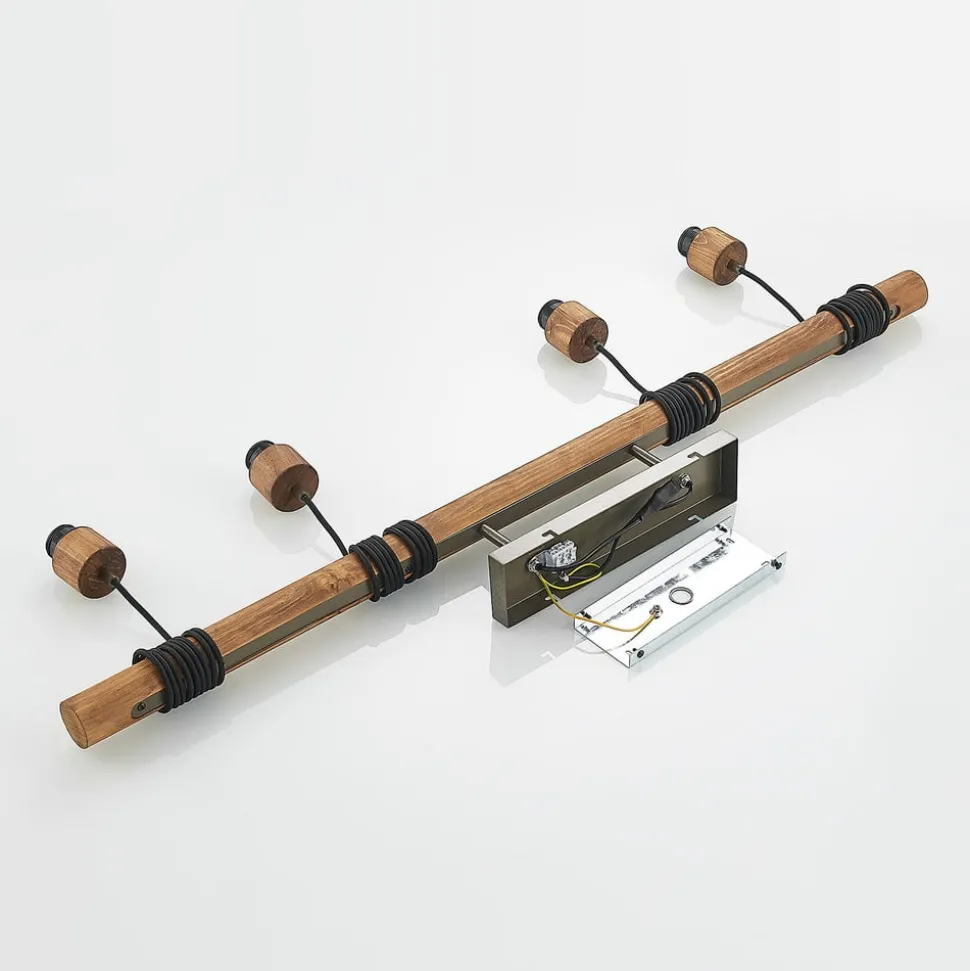 Lindby hengelampe Durbis, 116 cm, 4 lyskilder, grå, tre, E27