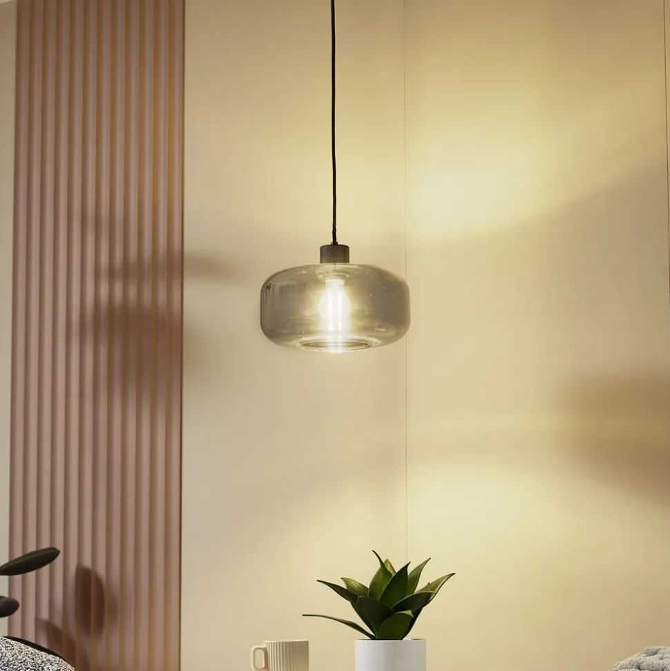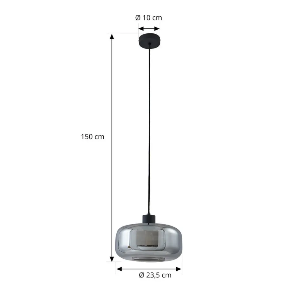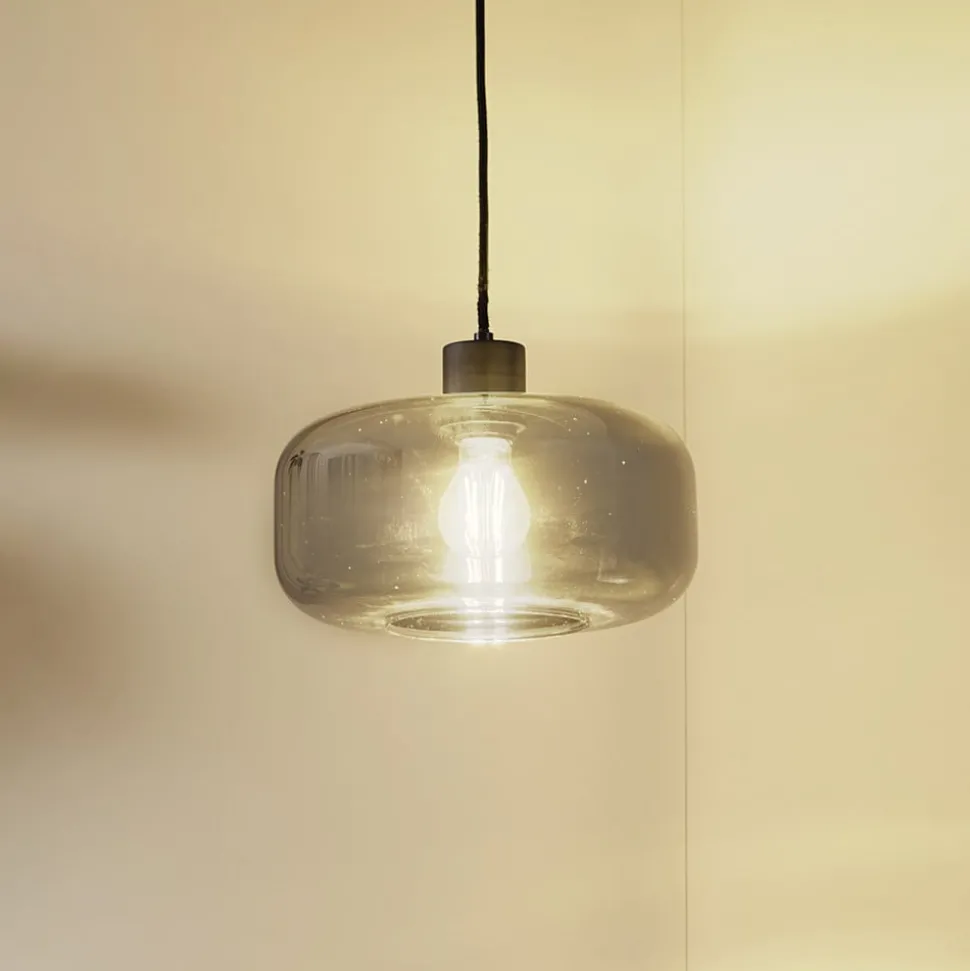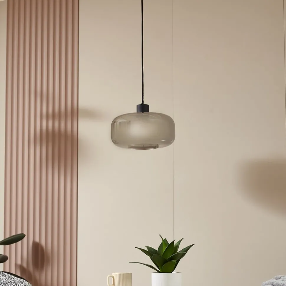 Lindby hengelampe Hildur, 1 lyskilde, Ø28,5 cm, røykgrå, glass