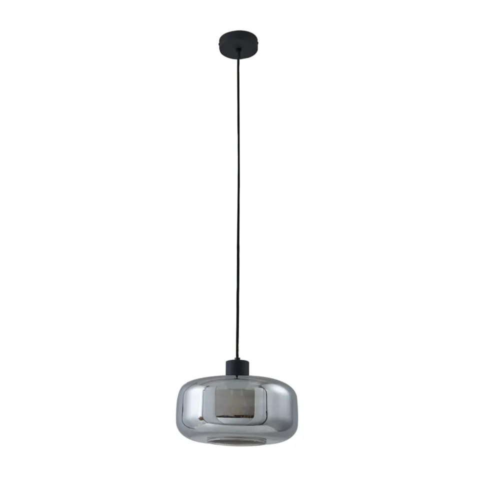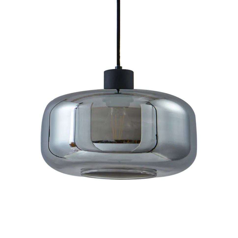 Hildur pendellampe i 1 lyskilde i røykgrått glass Hildur pendellampe kombinerer eleganse og funksjonalitet i sin design og skaper en atmosfære som forvandler rom. Med et røykfarget glass av høy kvalitet som skånsomt filtrerer lyset, er denne armaturen et blikkfang i enhver stue eller spisestue. Den kontrasterende svarte baldakinen passer sømløst inn i moderne interiørstiler og understreker lampens moderne utseende. Selv om lampen ikke er utstyrt med en integrert dimmer, kan den enkelt reguleres via en ekstern dimmer for å oppnå ønsket lysstyrke og stemning (vær oppmerksom på at den eksterne dimmeren må kjøpes separat).