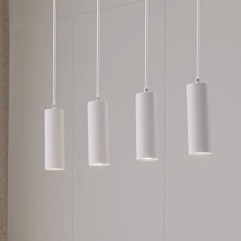 4 lyskilder Joffrey i hvit Pendellampen Joffrey kjennetegnes først og fremst av minimalisme og enkelhet, men har likevel et svært tiltalende utseende. De fire hvite skjermene har en langstrakt sylindrisk form og er plassert på rekke og rad. Derfor passer hengelampen perfekt over et langt spisebord eller en bardisk. Joffrey kan kombineres med en rekke ulike stiler – fra klassisk til moderne – takket være den enkle designen og det diskrete fargevalget.