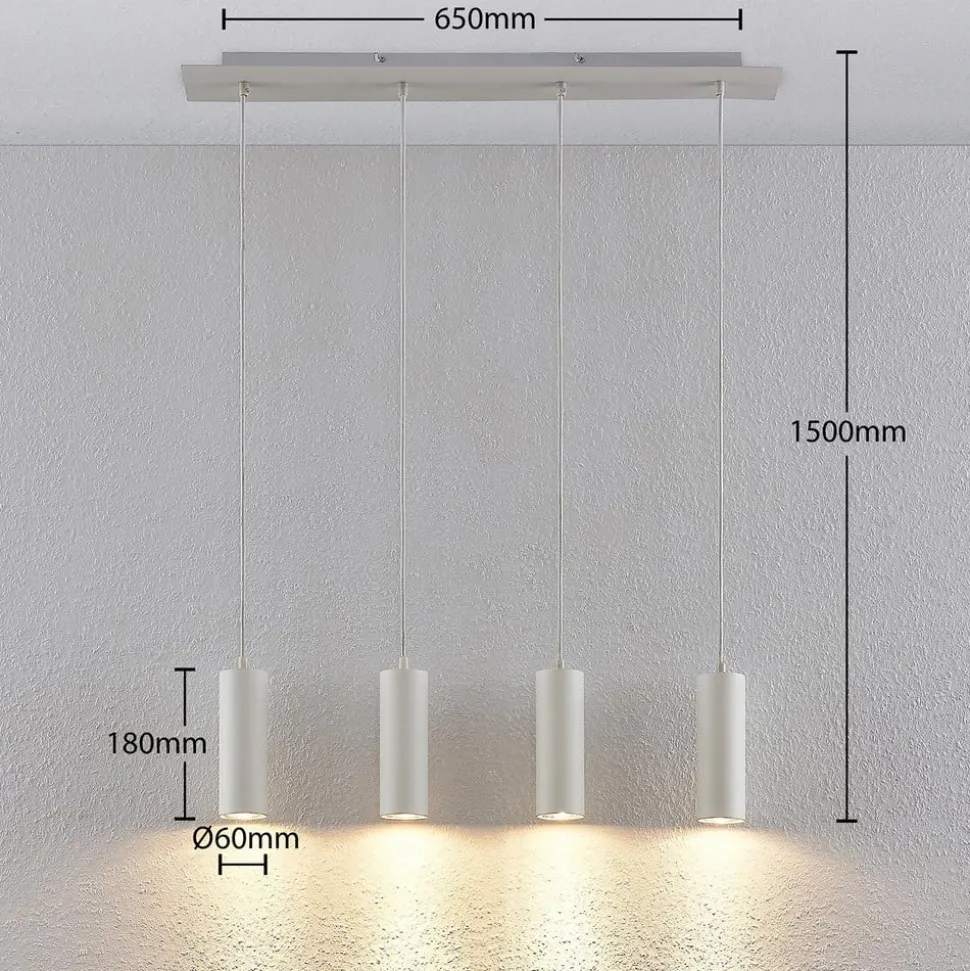 Lindby hengelampe Joffrey, 76 cm, hvit, 4 lyskilder, GU10