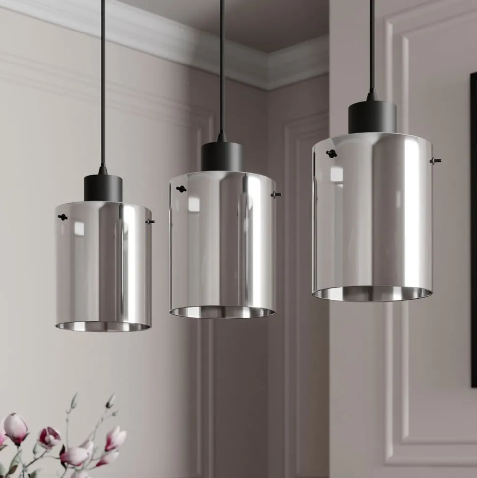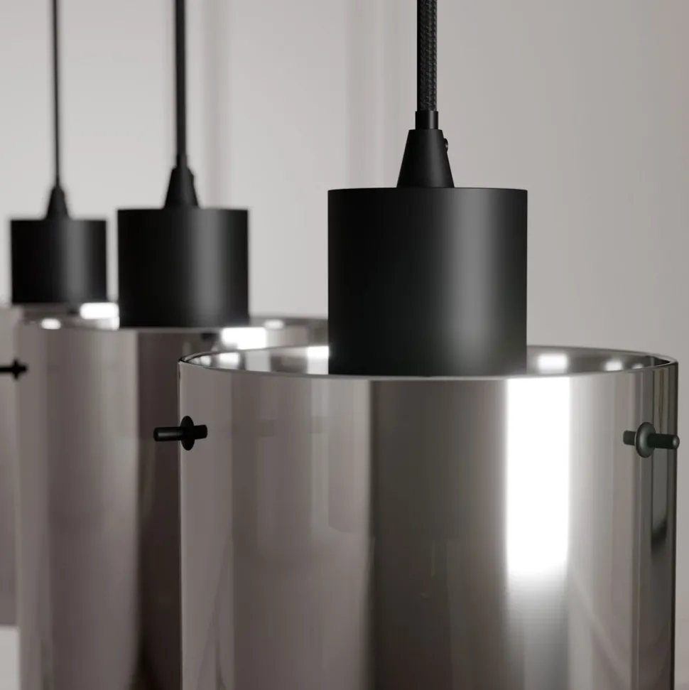 Kourtney 3 lyskilder pendellampe imponerer med sitt vakre røykgrå glass Kourtney pendellampe imponerer med sine tre lampeskjermer i et trendy røkt glassutseende. Smoky grey beskriver glassets attraktive farge. Looken har fått navnet sitt fra det faktum at glasset ser ut til å ha blitt misfarget av den røykfylte flammen fra et stearinlys. Det mørke glasset sørger for at lyset skinner forsiktig gjennom. Resultatet er at lyset ikke skinner så sterkt og ikke blender. Derfor egner Kourtney seg godt som pendellampe i rom som krever hygge. Lampen gjør seg spesielt godt i en stue eller spisestue, særlig fordi den avlange formen gjør det mulig å montere den over et bord.