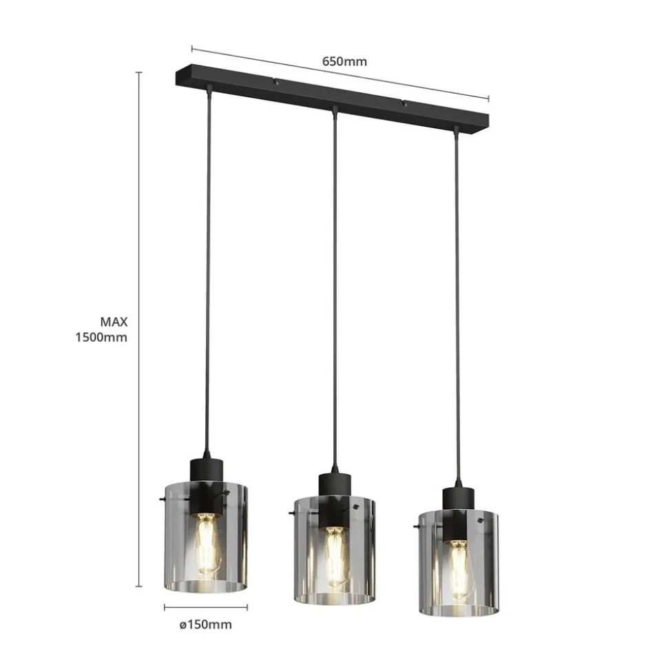 Be the first to review “Lindby hengelampe Kourtney, 3 lyskilder, svart/grå, glass, E27” Avbryt svar
