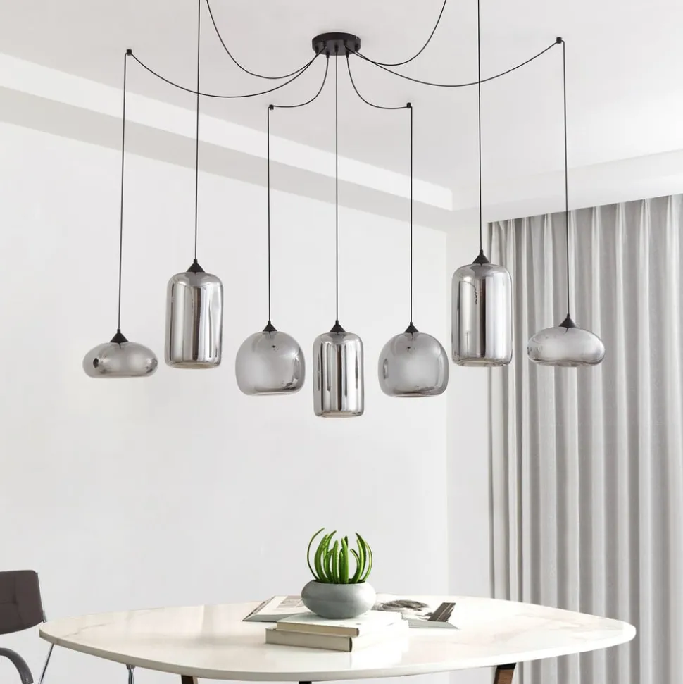 Lindby Marla: Elegant pendellampe for stilfull belysning Med sine 7 lyskilder og røykgrå glasselementer er pendellampen Marla en elegant lyskilde for alle rom. Enten det er i stuen, på kjøkkenet eller over spisebordet i spisestuen – Marla skaper en atmosfære som er både koselig og inspirerende. Armaturens moderne stil føyer seg sømløst inn i moderne møbleringskonsepter og blir et blikkfang i ethvert interiør. Selv om armaturen ikke er utstyrt med en integrert dimmer, kan lysstyrken justeres via en ekstern dimmer for å skape ønsket stemning – fra beroligende lys for avslappende kvelder til stimulerende lysstyrke for produktive timer.