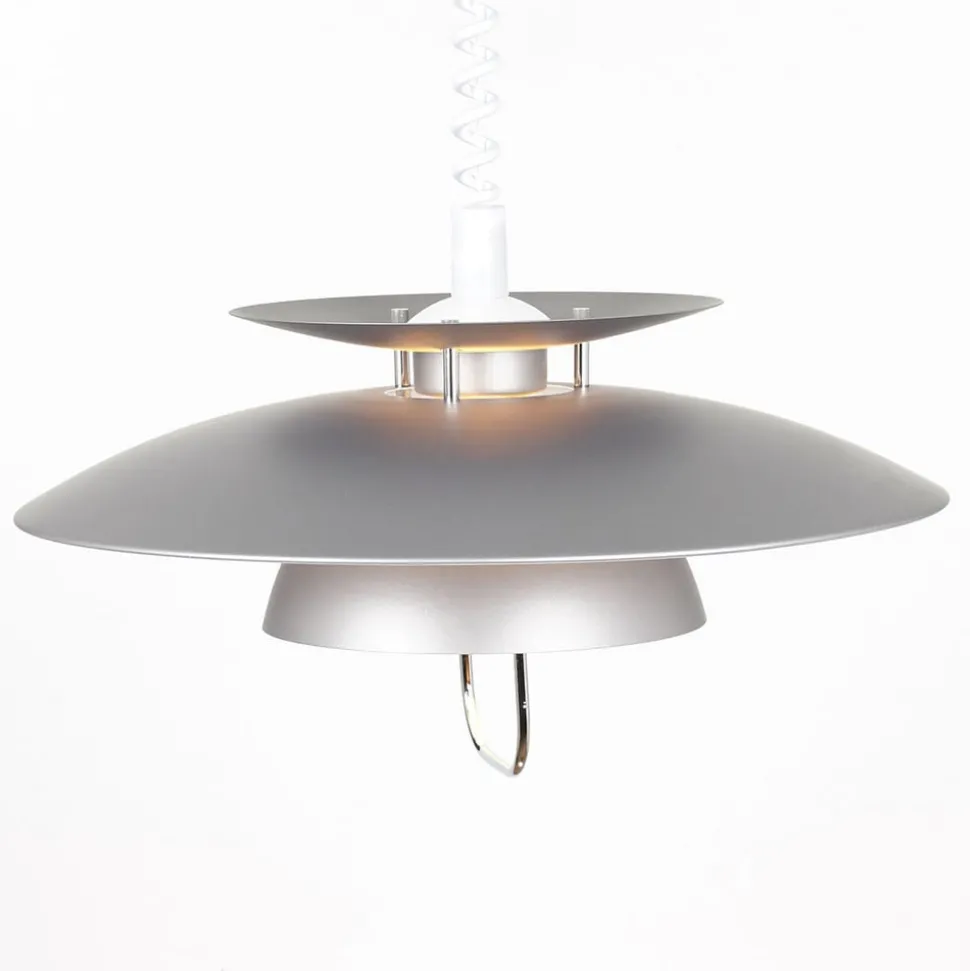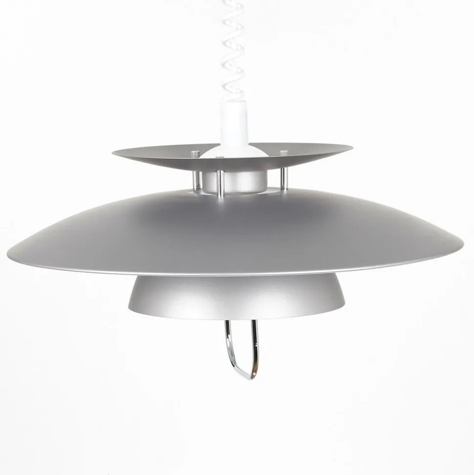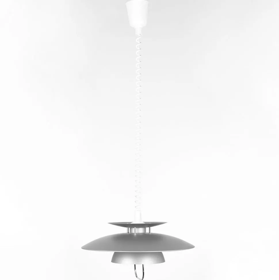 Høydejusterbar Nadija spisestuependellampe med grå finish Denne pendellampen er beregnet for bruk over en spiseplass, der den gir god belysning av bordflaten og et koselig lysskjær generelt. Hvor direkte eller indirekte lyset oppleves, avhenger av hvor høyt skjermen er trukket opp. Jo lavere den henger, desto mindre direkte oppleves lyset av de tilstedeværende. Takket være den spiralformede høydejusterbare vaiermekanismen kan høyden justeres raskt og enkelt – om nødvendig hver dag. Alt du trenger å gjøre er å gi metallbraketten nederst på skjermen et raskt rykk. Den grå finishen på hele utsiden av skjermen er også verdt å fremheve. Det skaper en kjølig eleganse som kan kombineres med mange stilige interiører. Samlet sett kan lampens stilistiske design kategoriseres som en del av den nordiske looken, som også er svært populær i andre deler av Europa og som verdsettes for sin designorienterte eleganse.