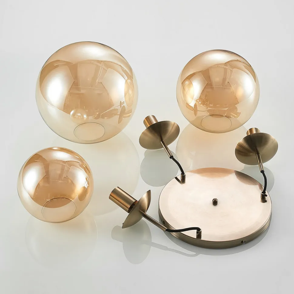 Lindby hengelampe Teeja, amber, 3 lyskilder, Ø52cm, glass, E27