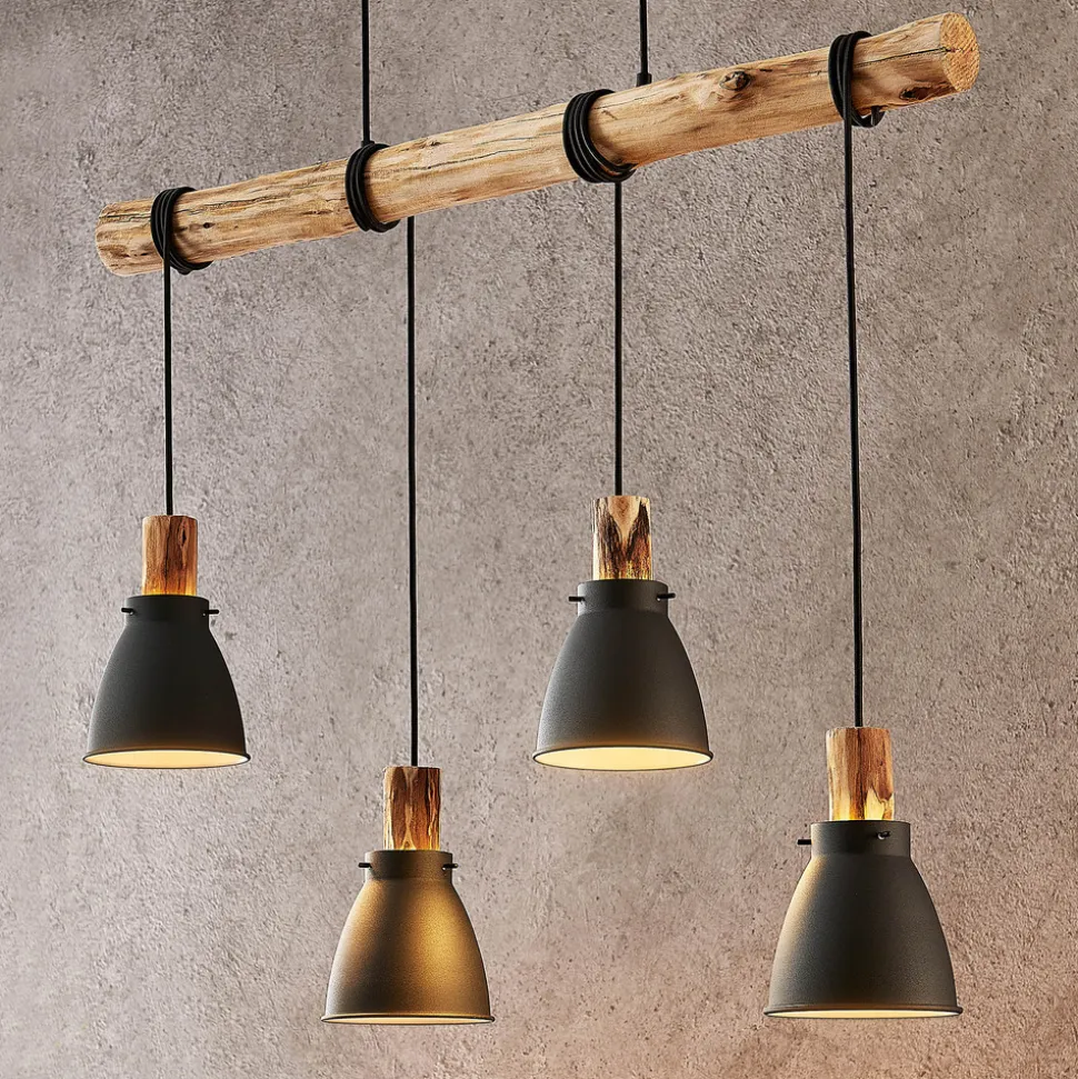 Lindby hengelampe Trebale, E14, Ø 15 cm, 4 lyskilder, tre