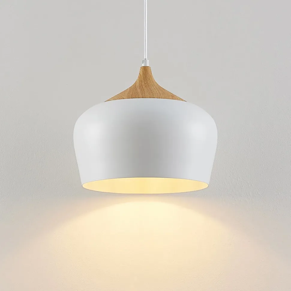 Lindby hengelampe Vilsera, hvit, metall/tre, 26 cm, E27