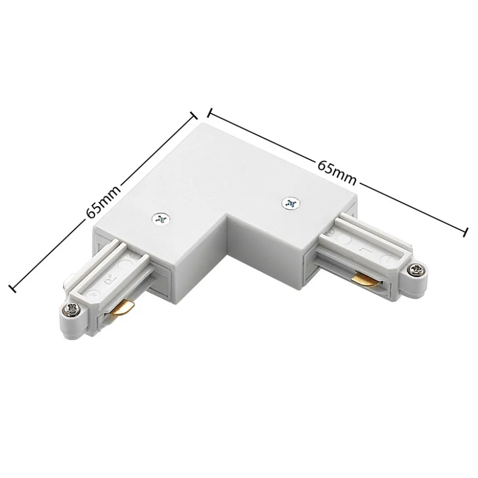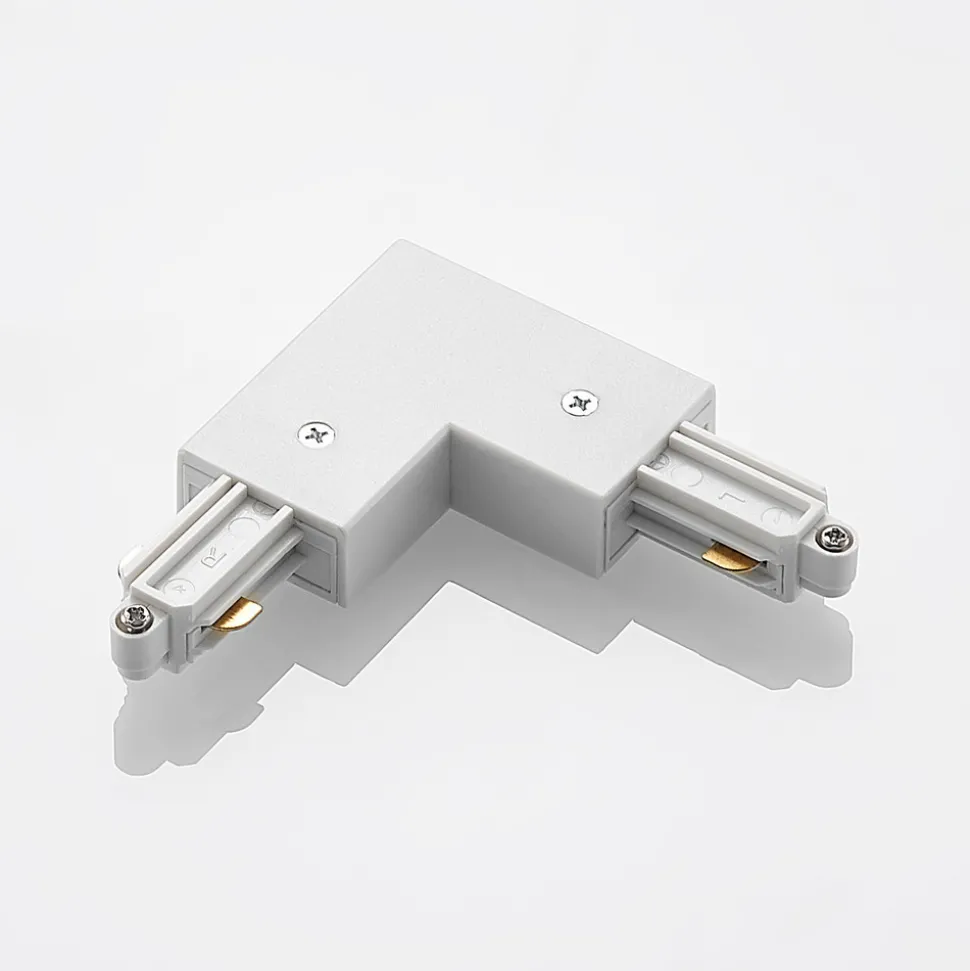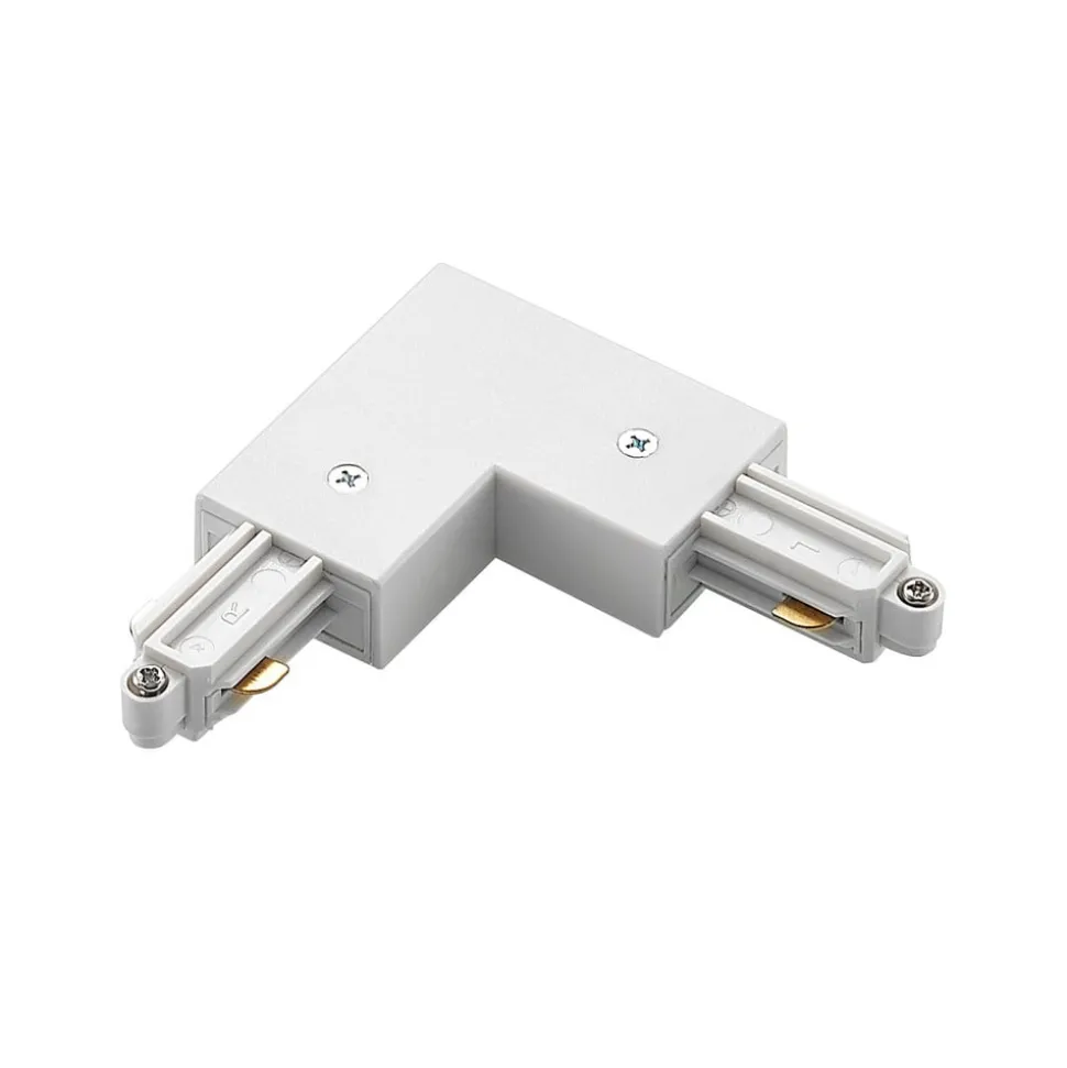 Hjørnekobling for Linaro enkeltkretsskinnesystem, hvit Den hvite hjørnekoblingen i 90° vinkel kobler sammen skinner i et enkeltkretsskinnesystem. Den hvite versjonen er ideell for hvite skinner for å oppnå en visuelt diskret tilkobling.