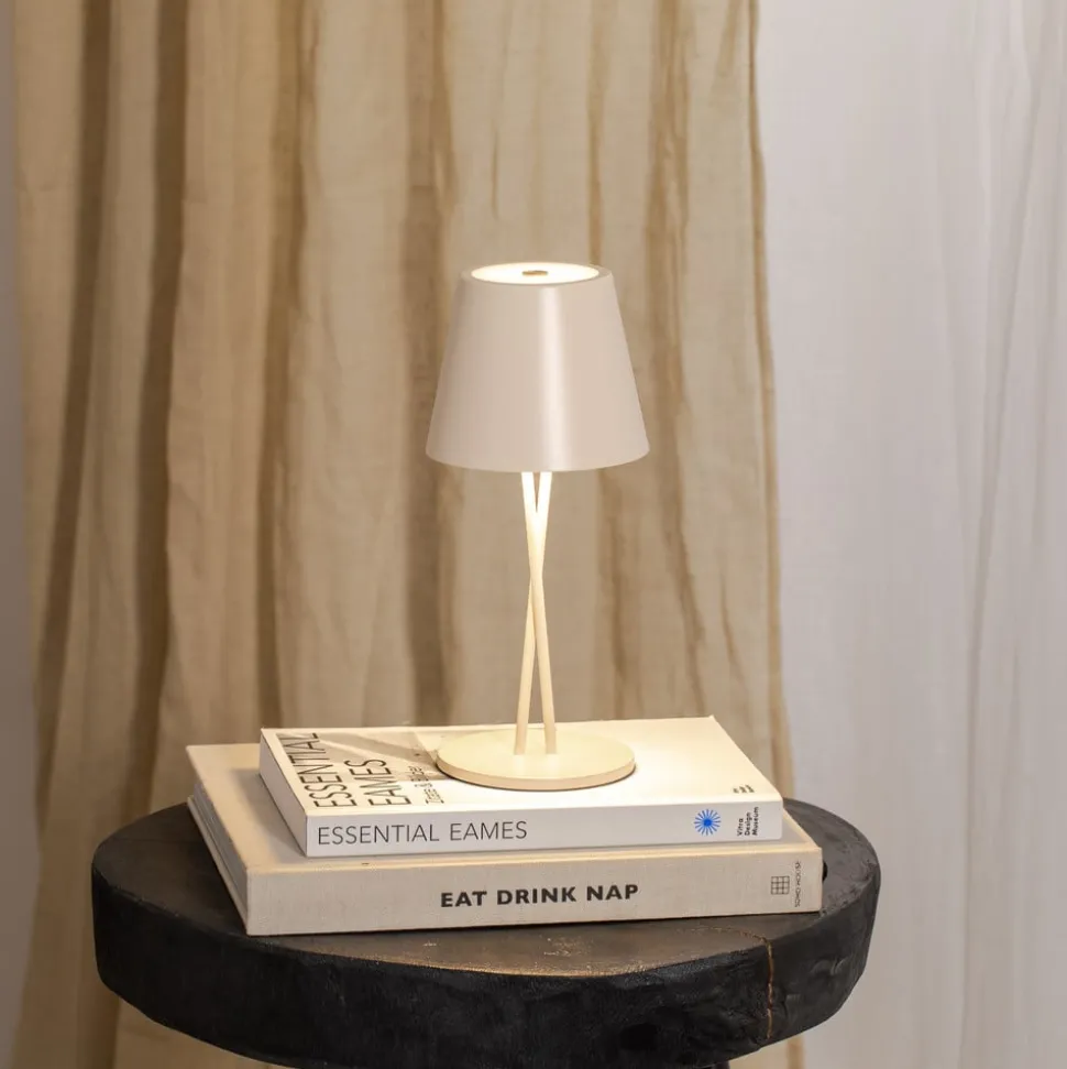 Lindby LED oppladbar bordlampe Janea, CROSS, beige, metall
