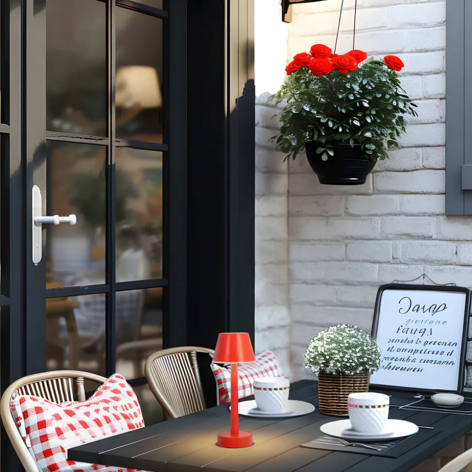 Lindby LED oppladbar lampe Gaja, rød, USB, IP44, RGBW, dimbar