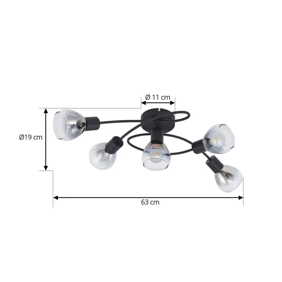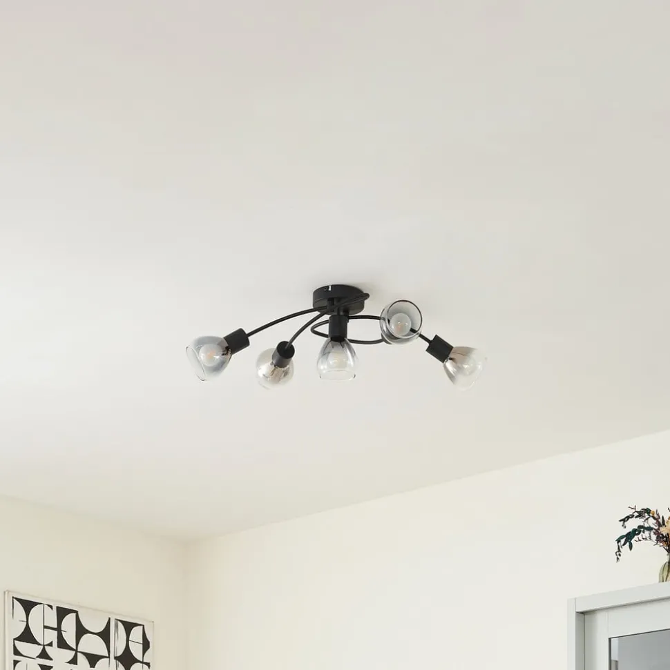 Lindby Pendura taklampe, 5 lyskilder, svart, glass