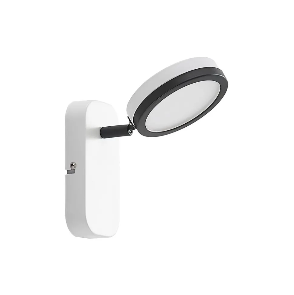 Vesim spotlight med fleksibel lyskilde Vesim er en tidløs lyskilde som kan festes både i taket og på veggen. Det slanke armaturhuset er laget av jern og har en hvit finish. Det runde armaturhodet har i tillegg en svart ring som gjør utseendet komplett. Spotlighten har GX53-sokkel og kan dreies og vippes etter behov for å tilpasse lysutslippet til dine behov.