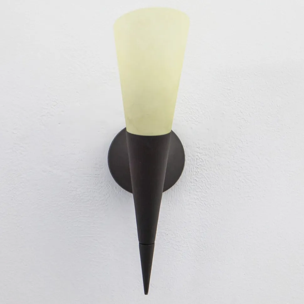 Lindby-vegglampe Alva, rustfarget, glass, 34 cm høy, E14