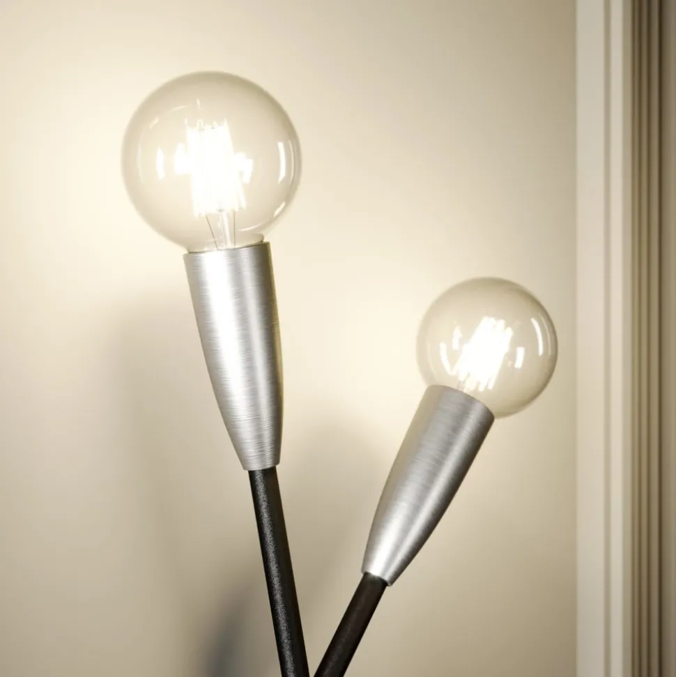 Carlea er et attraktivt belysningsobjekt for korridorer og stuer. Den svarte stammen er laget av et forgrenet metallelement og har nikkelfargede elementer under lampefatningene, som skaper en harmonisk kontrast. Lysbildet til designen passer godt til moderne innredninger, og valget av E27-pærer bør baseres på en helhetlig stil, for eksempel filamentpærer, ettersom de minner om tradisjonelle glødepærer.