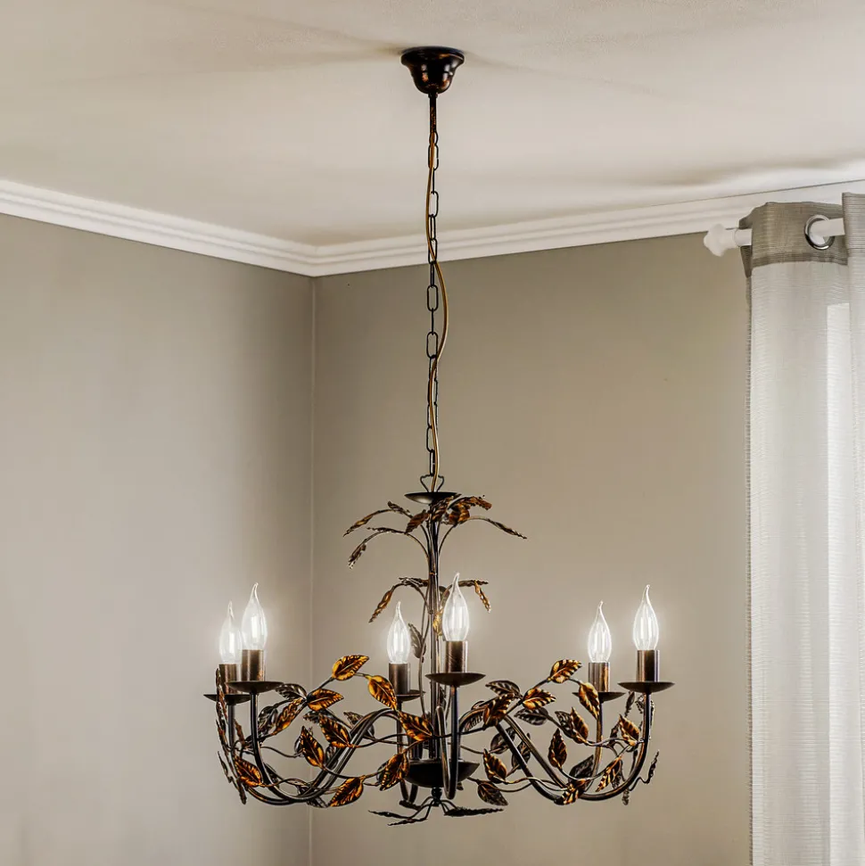 Lysekrone Collana Metall i edel bronse kombinerer florentinsk stil med høy kvalitet i metall. Konstruksjonen med 6 lyskilder sørger for en imponerende lyssetting i stuer og spisestuer. Takket være muligheten for ekstern dimming kan lysintensiteten tilpasses individuelt for å skape den ønskede atmosfæren.