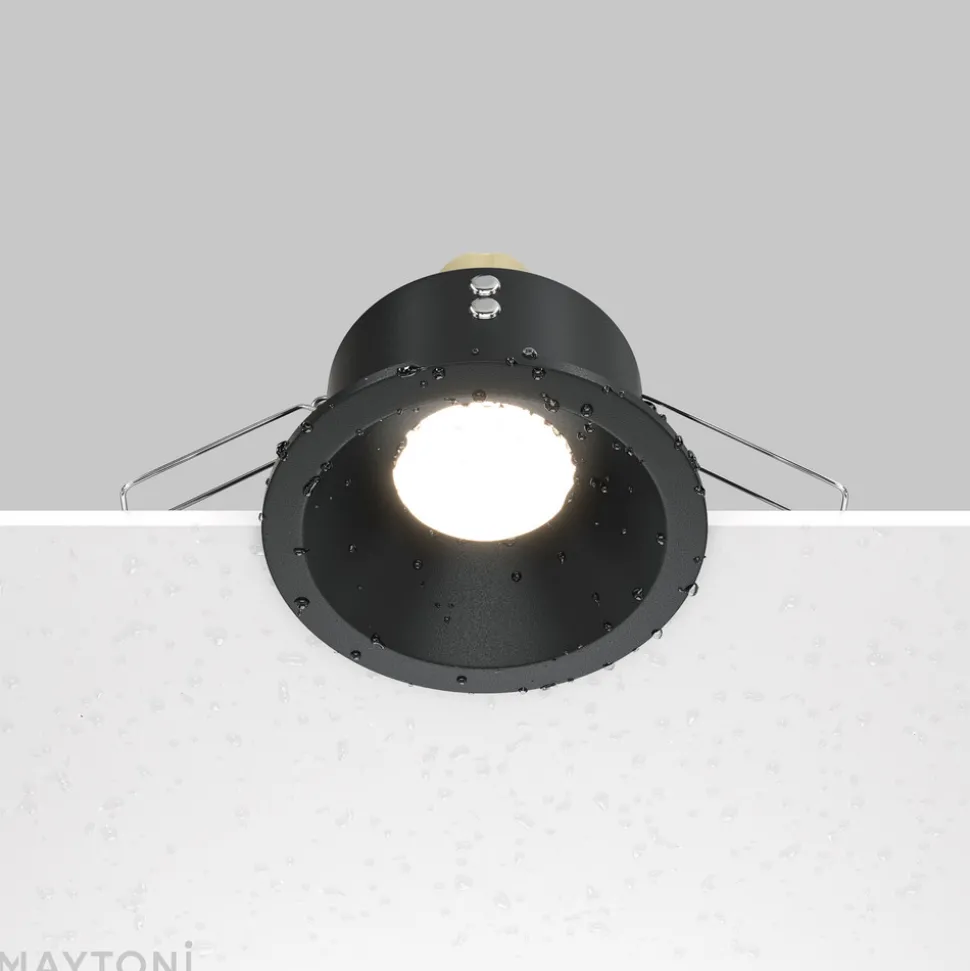 Maytoni innfelt taklampe Zoom, svart, Ø 8,5 cm aluminium IP65