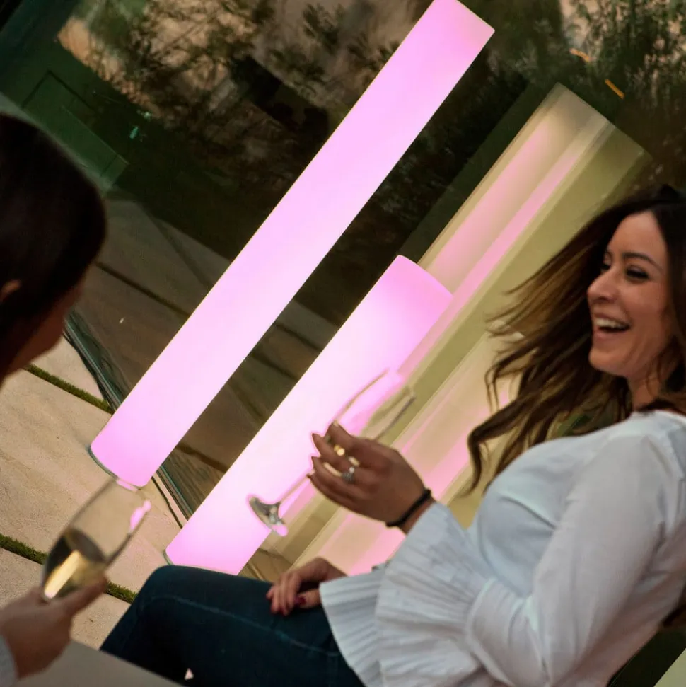 LED-gatelampe fra den spanske produsenten Newgarden er et dekorativt tillegg til det moderne uteområdet. veilampe i sylindrisk form er laget av robust og UV-bestandig polyetylen og er utstyrt med moderne LED-teknologi og et oppladbart batteri. veilampe leveres med en fjernkontroll som kan brukes til å skifte lyset til mange forskjellige fargede lysfarger eller til sterkt lys i lysfarge i dagslys, og som også kan dempes kontinuerlig i hvilken som helst valgt lysfarge .