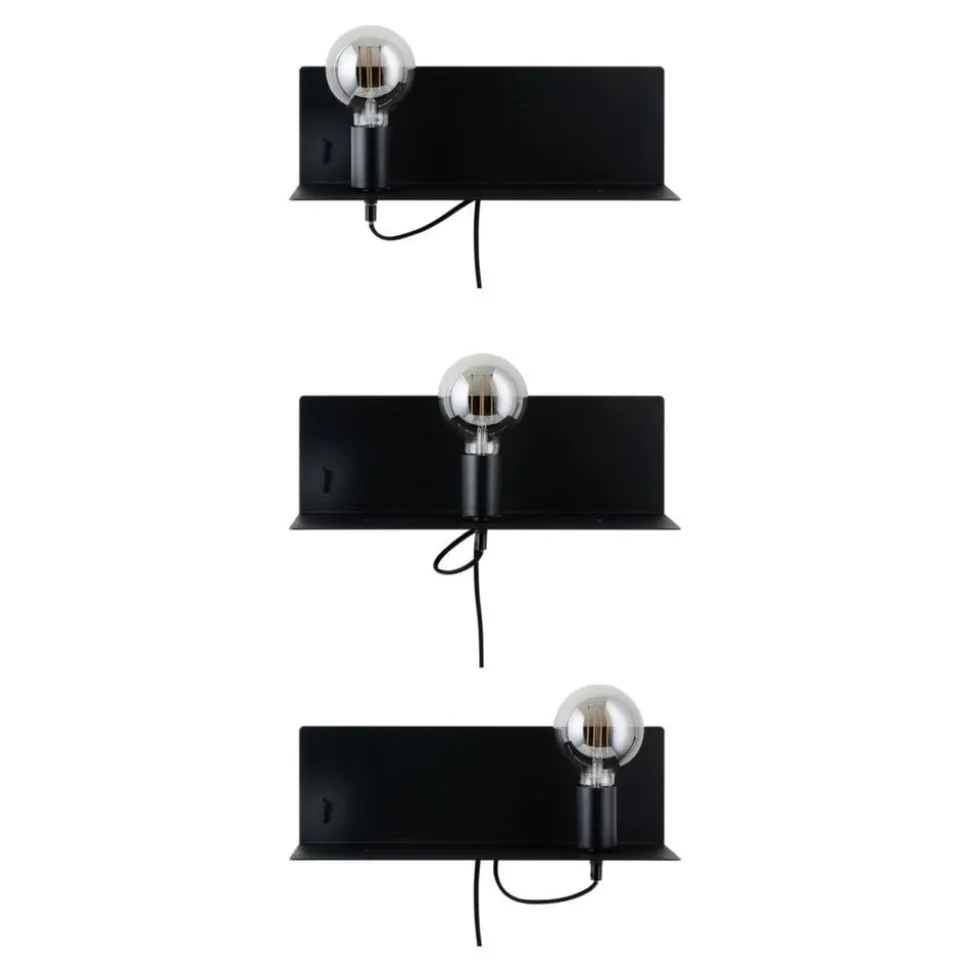 vegglampe Devara med praktisk hylle, kabel og plugg