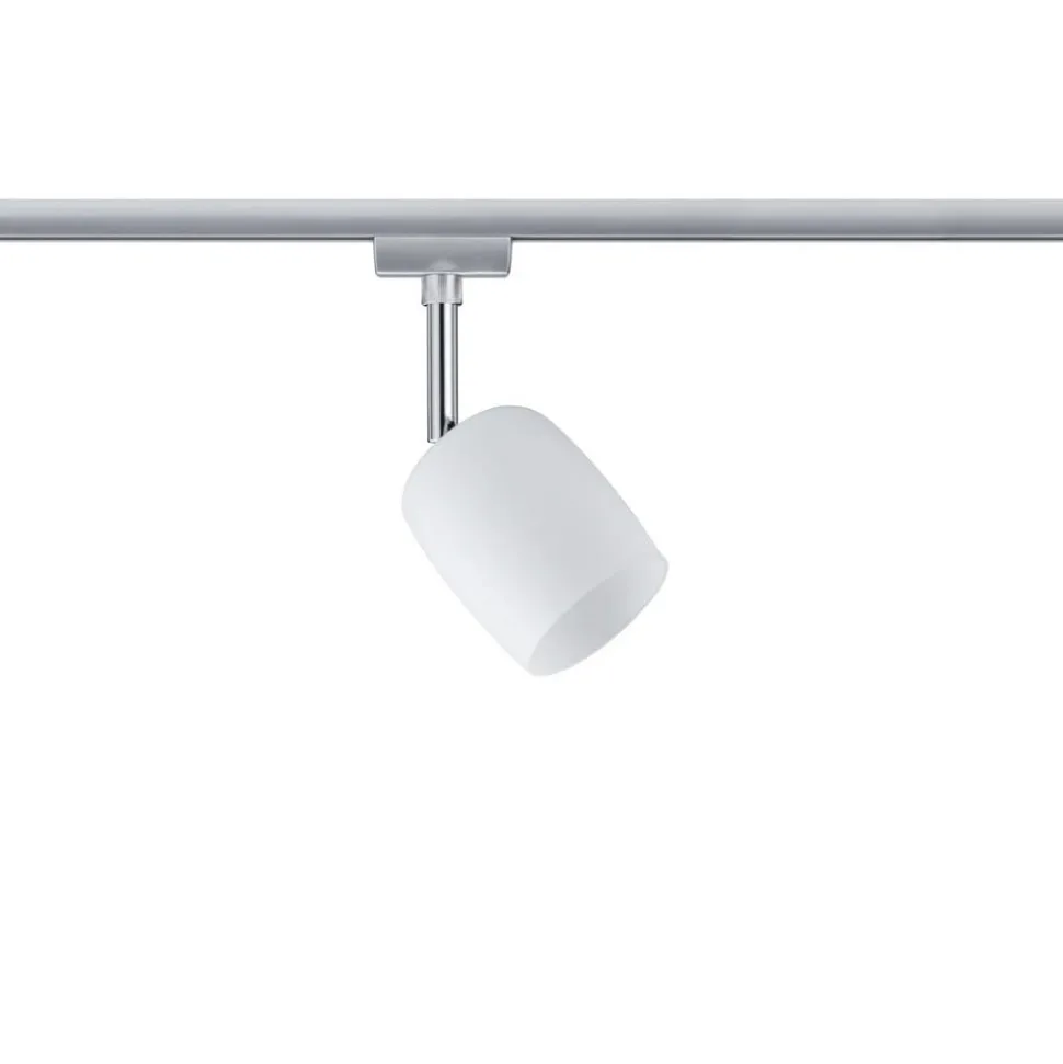 spotlight Blossom kan integreres i et URail skinnesystem og er ekstremt funksjonelt takket være den bevegelige skjerm . skjerm av satinert glass er enkel og gir spotlight et snev av eleganse. I tillegg sørger det matte glasset for at lyset fordeles mykt og uten blending i miljøet. En lampe med G9-kontakt, som kan kjøpes som tilbehør, kreves for igangkjøring.