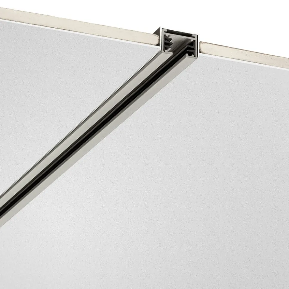 Innfelt profil for DUOline 2-faset skinnesystem Denne skinnen er en av mange komponenter til DUOline skinnesystem. Med innbyggingsprofilen som tilbehør kan skinnene monteres innfelt i taket i stedet for utenpåliggende