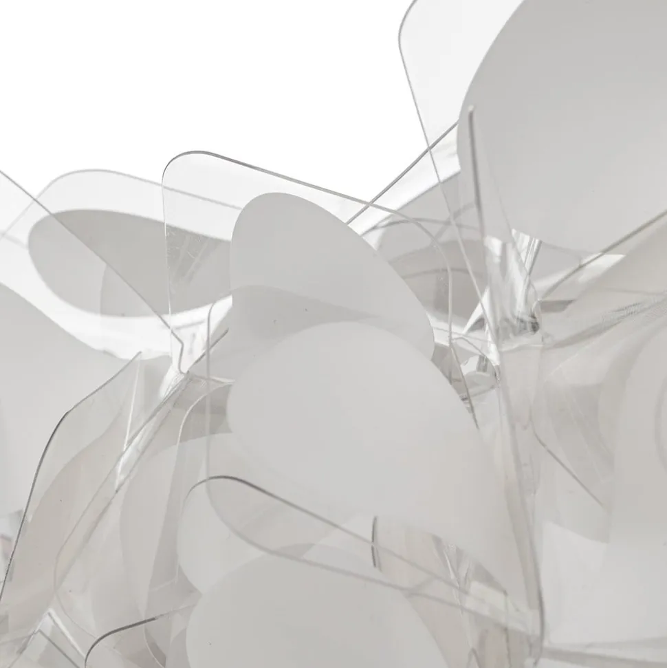 Clizia Mama Non Mama hengelampe gir et uttrykk for ren skjønnhet når det gjelder optikk og lysutslipp. I likhet med blomsterblad resulterer utallige elementer som manuelt er koblet til hverandre ved hjelp av plug-in-tilkoblinger laget av Cristalflex®, i en skjerm som ser ut som en lysende bukett og skaper en enestående vakker lysatmosfære. En hengelampe, designet av Adriano Rachele og produsert av den italienske belysningsprodusenten Slamp, grunnlagt av Roberto Ziliani i 1994, som er ideell for atmosfærisk Slamp belysning og områdebelysning i stuer og soverom.