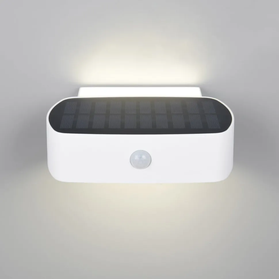 Funksjonell solcelledrevet utendørs vegglampe Bilbao med opp- og downlight og USB-tilkobling