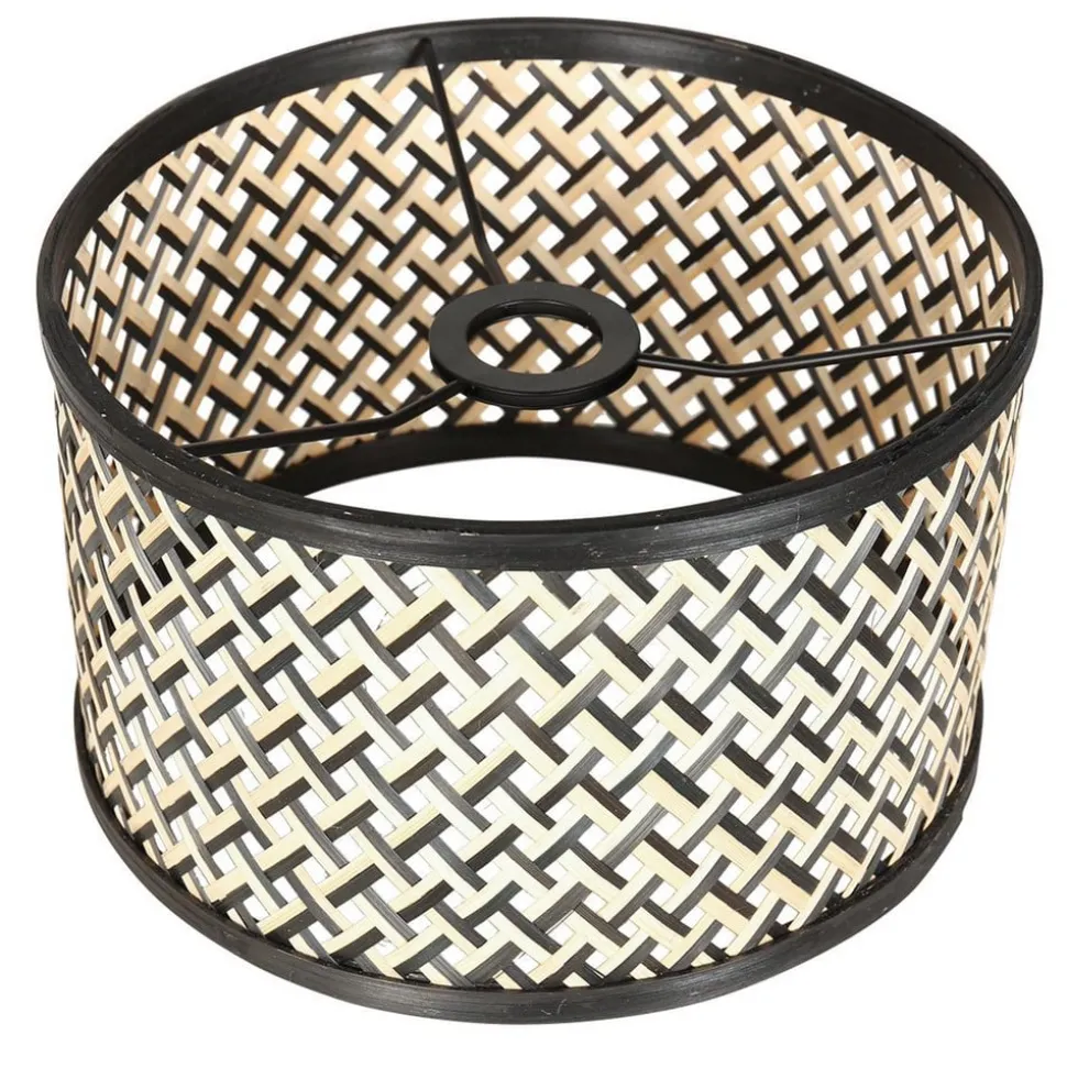 Stang gulvlampe, LED-leselampe, svart/naturlig flettverk