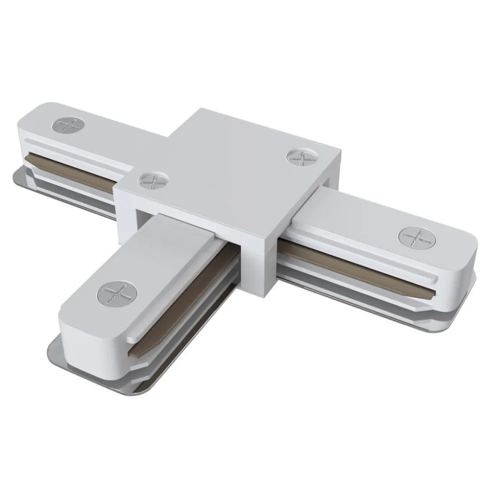 T-forbinder Skinne for enkretsanlegg i hvitt Det enkle elementet kan brukes til å koble sammen tre skinneseksjoner i en T-form.