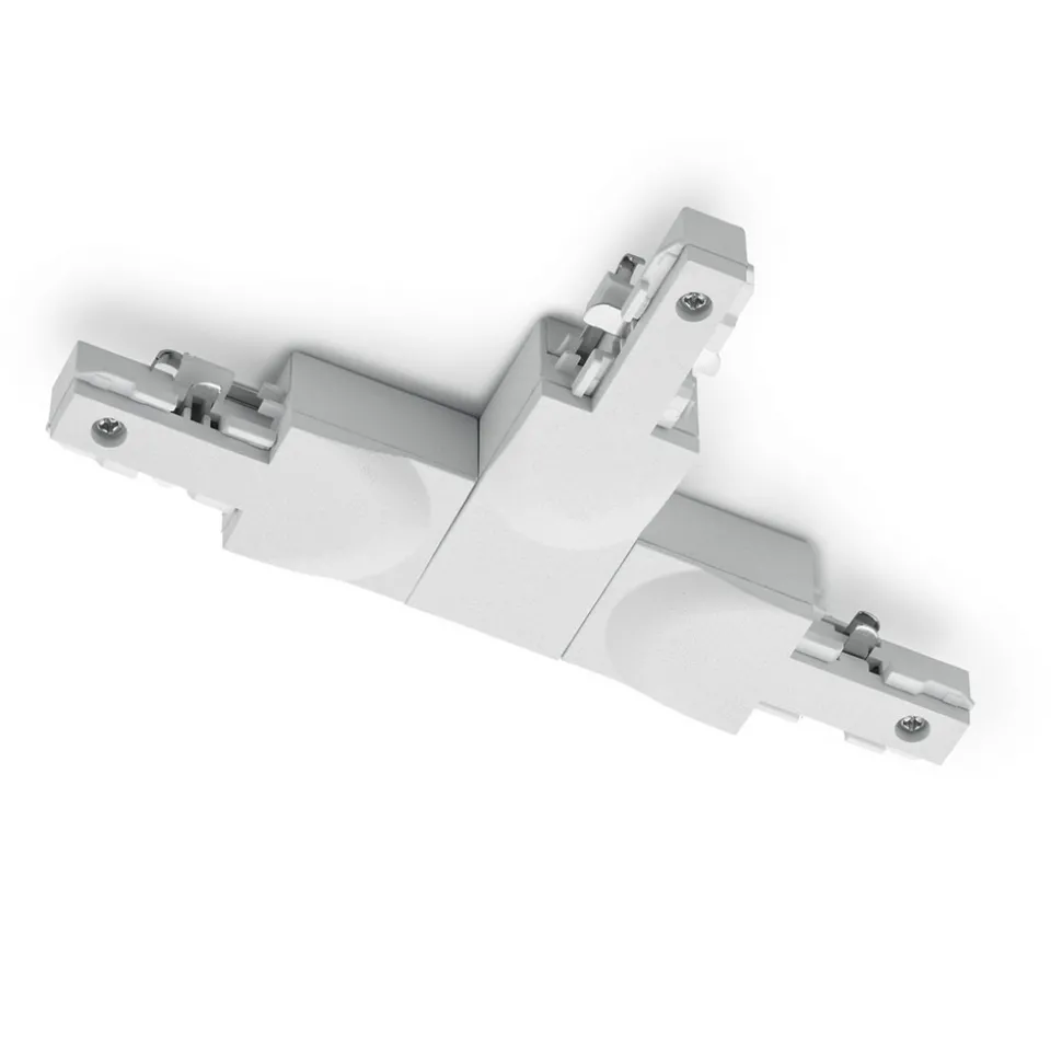 DUOline T-kobling for 2-faset skinnesystem Denne T-koblingen passer til DUOline 2-faset skinnesystem. Den gjør det mulig å koble sammen tre skinner. Tilgjengelig i en farge som passer til det respektive sporet.