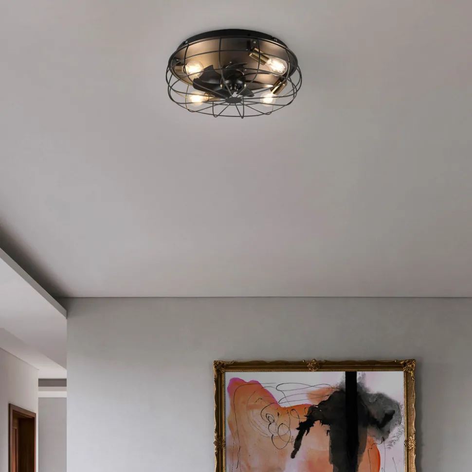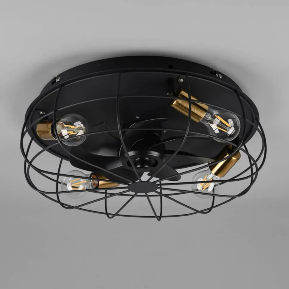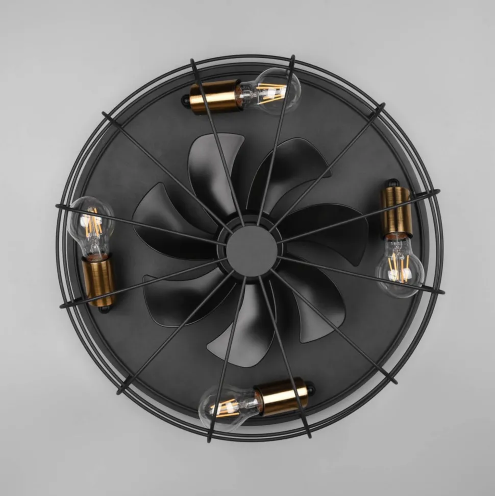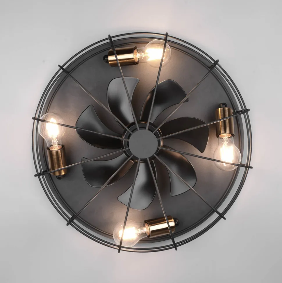 Den Trondheims-belyste takviften smelter enkelt inn i ethvert interiør med sin tidløse design. Huset er laget av metall og har et gitter bak som det er fire fatninger for E27-pærer (eksklusive) og de gjennomsiktige vingene.