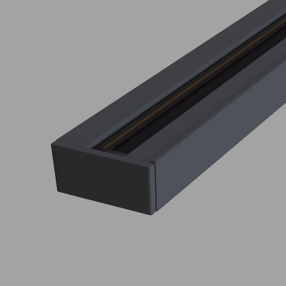Sporet laget av sort, pulverlakkert aluminium brukes til å utvide et 1-faset skinnesystem. Den leveres inkludert strømforsyning og matchende endestykker.