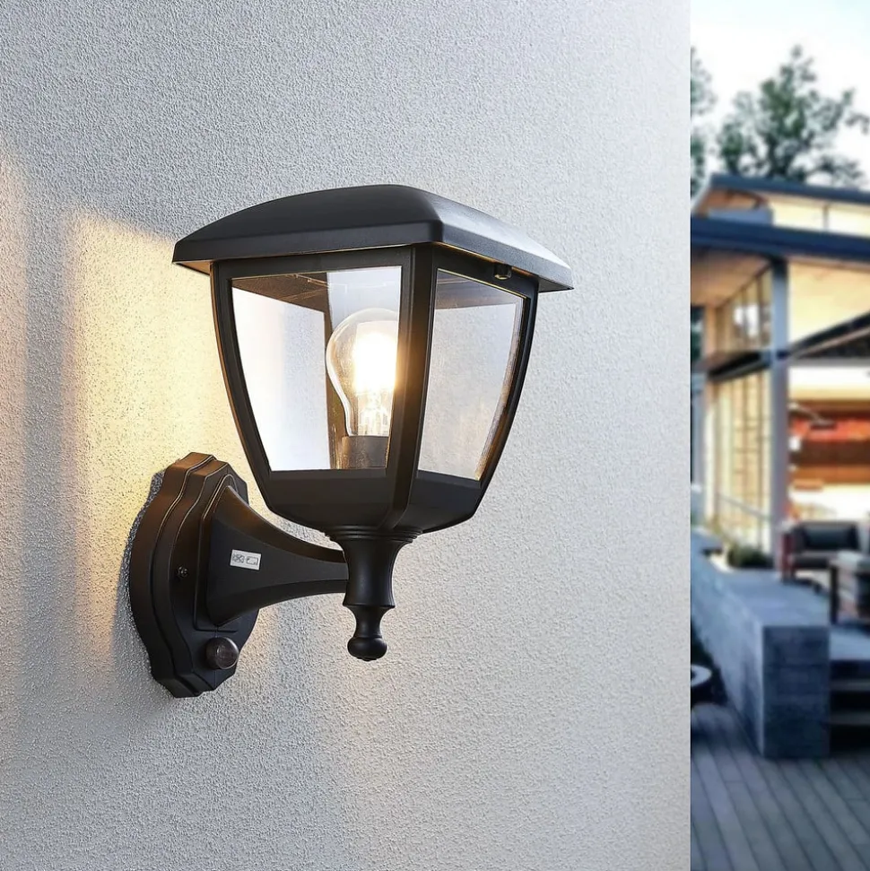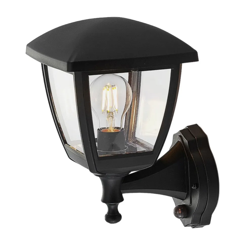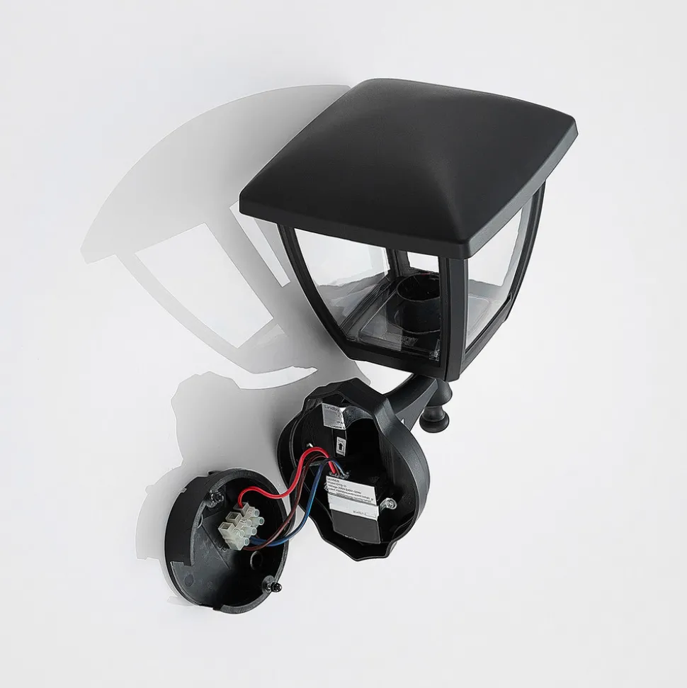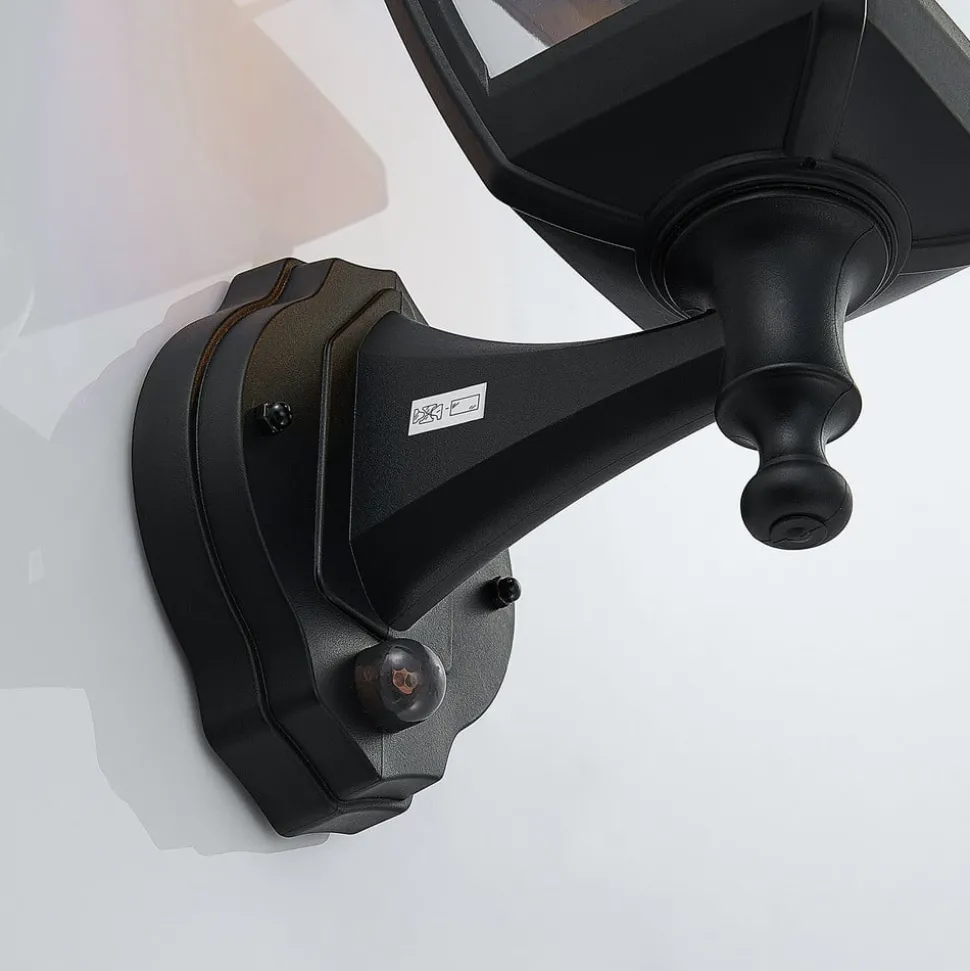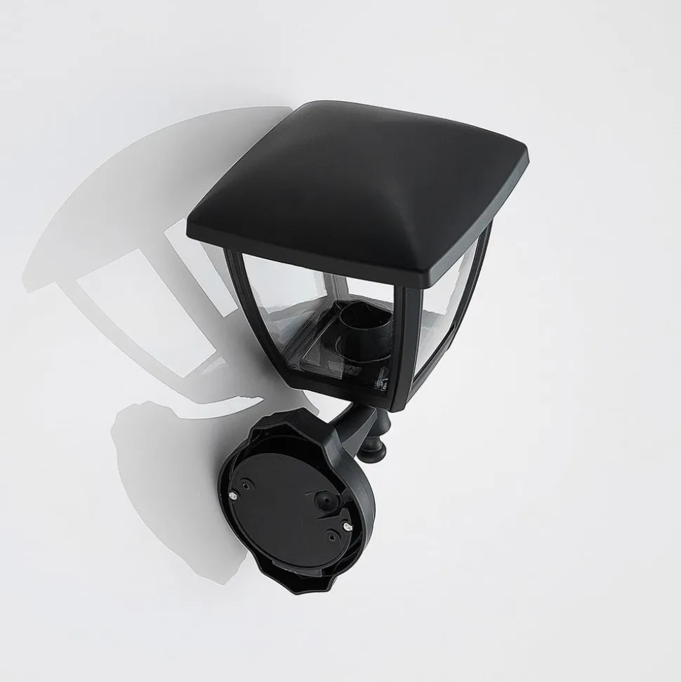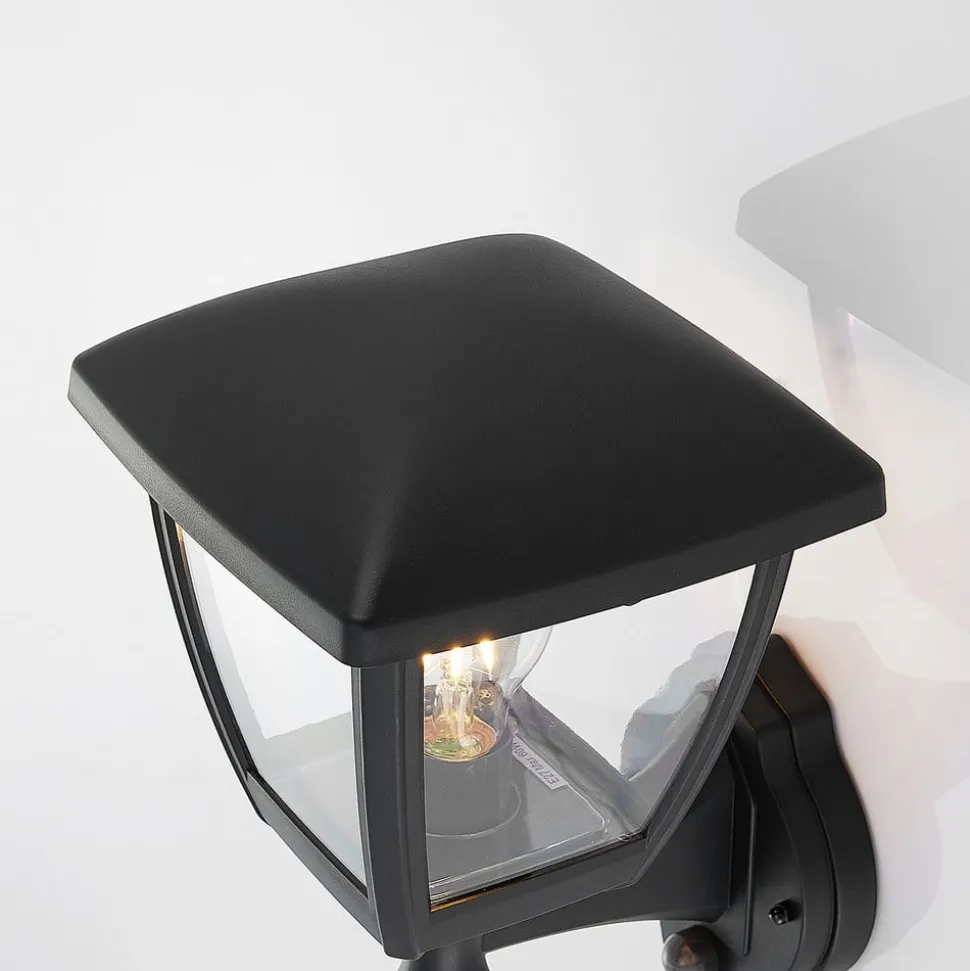 Svart utendørs vegglampe Acelya med gjennomsiktig plastplater og lyktlignende design