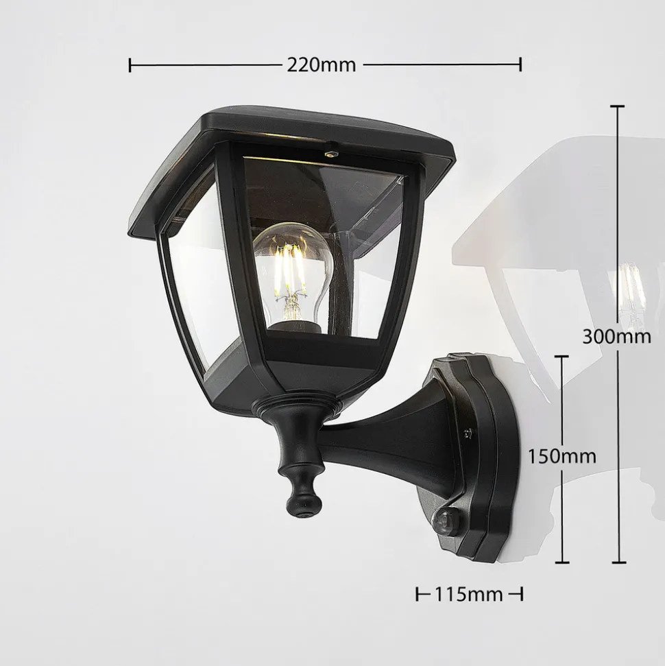 Acelya er en utendørs vegglampe med nostalgisk preg og minner om den klassiske lykten fra gamledager. Lampen bruker E27-lyspærer etter eget ønske, men vi anbefaler en LED-filamentpære, ikke bare fordi den bruker lite strøm, men også fordi designet minner om den tradisjonelle glødelampen, som passer perfekt til resten av lampen. Du kan også bruke en rustikk lyspære, dette designet er også veldig nostalgisk. Lampekroppens overflate er i tidløs svart og passer i en rekke omgivelser. Det består av robust polykarbonat og er saltvannsresistent, slik at du vil ha glede av denne lampen lenge, selv om du bor ved sjøen.
