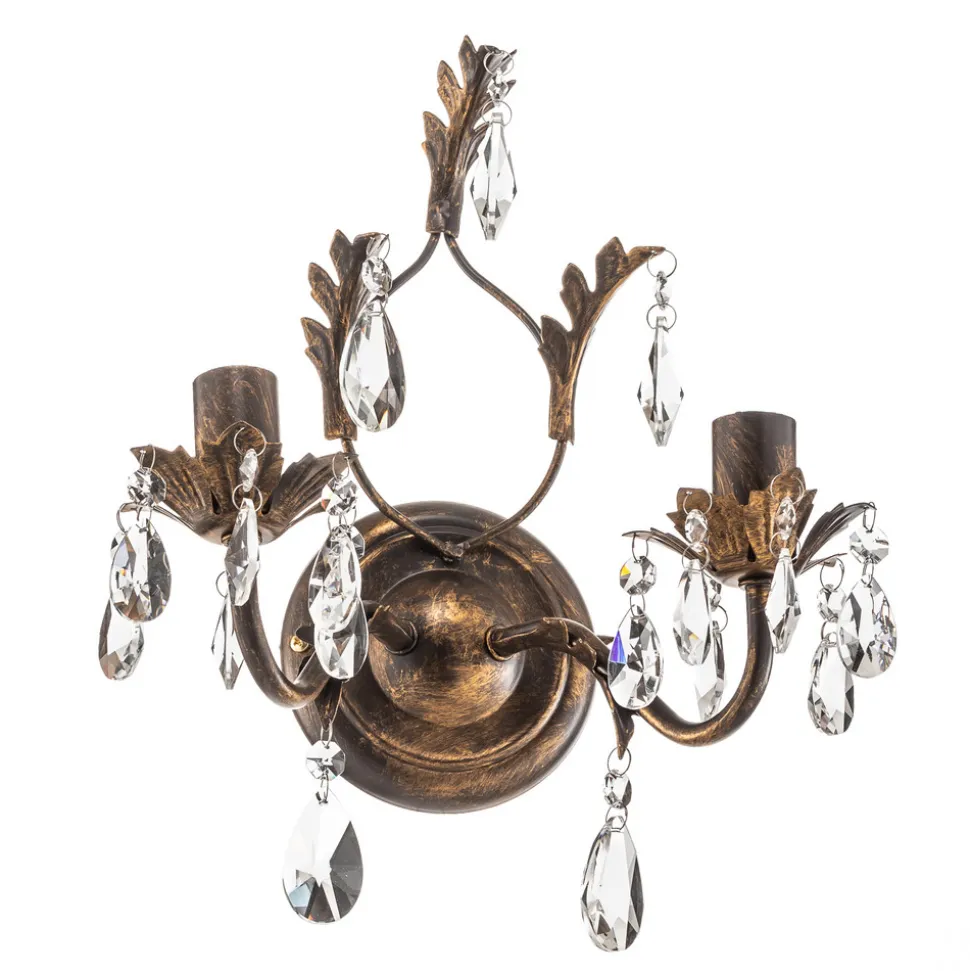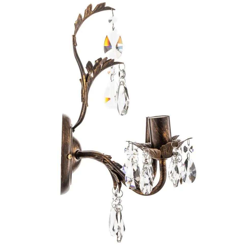 Vegglampe Teresa som lysekrone med 2 lyskilder, er et uttrykk for tidløs eleganse og håndverkskunst. Lampen er laget av smijern og dekorert med høykvalitets K9-krystallglass, og passer perfekt inn i antikke stilarter. Kombinasjonen av antikk bronsefinish og klare krystallelementer skaper et fascinerende spill mellom lys og skygge som gir ethvert rom en stilfull atmosfære.