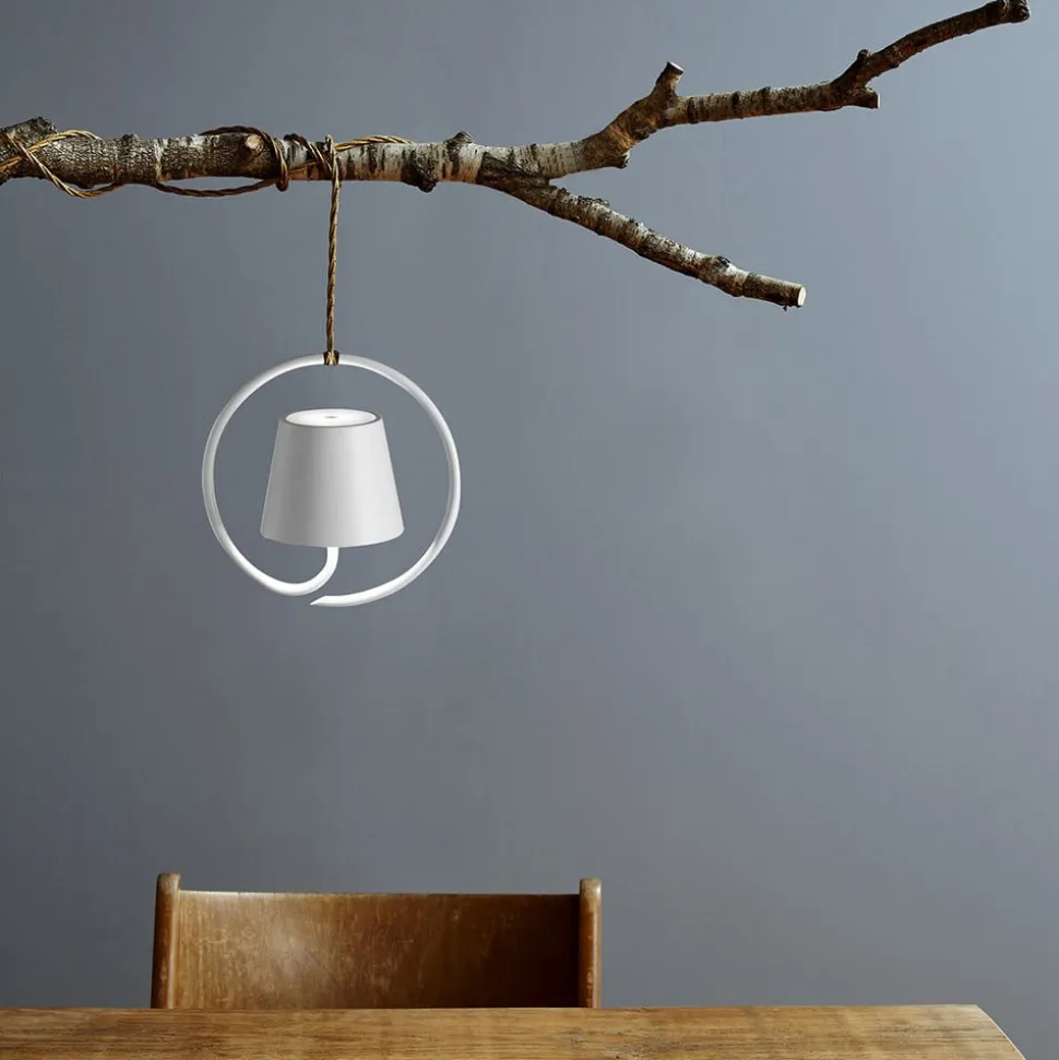 Zafferano Poldina LED-pendel med oppladbart batteri, hvit