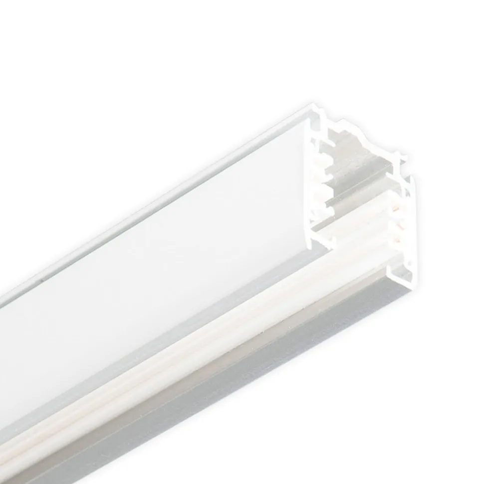 3-fase skinne Noa – utenpåliggende eller nedhengt montering Den fargelakkerte skinnen for et 3-fase skinnesystem er egnet for utenpåliggende eller nedhengt montering. Ideell for butikkbelysningssystemer. Matchende tilbehør, som endestykker, mating eller ulike koblinger, er tilgjengelig separat – Kobberleder Ø 4 mm² – Asymmetrisk design