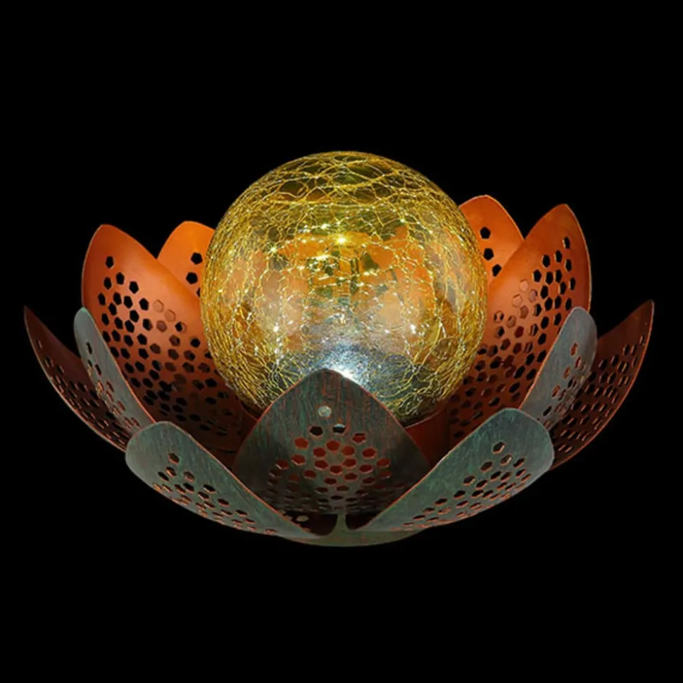 LED-solcellelampe i form av en blomst med en knitrende glasskule