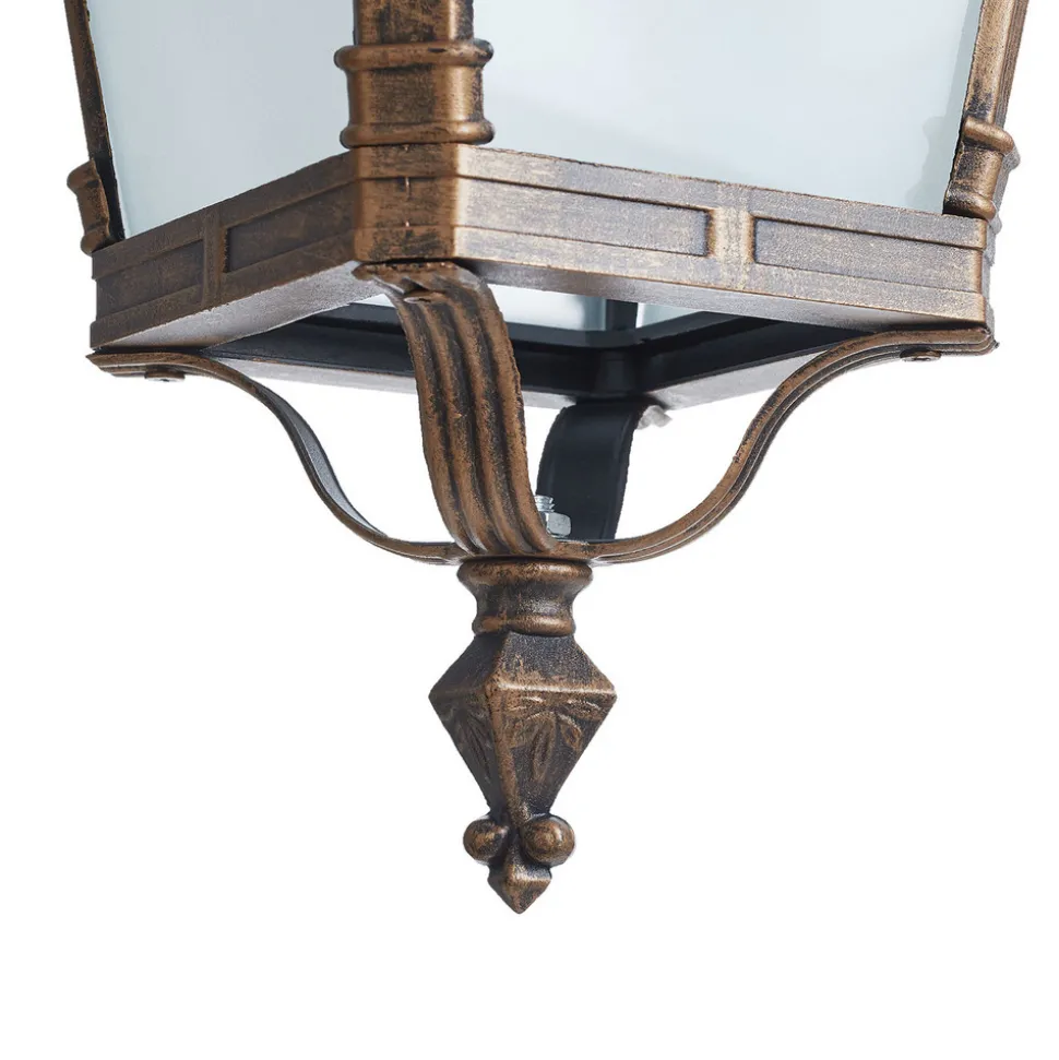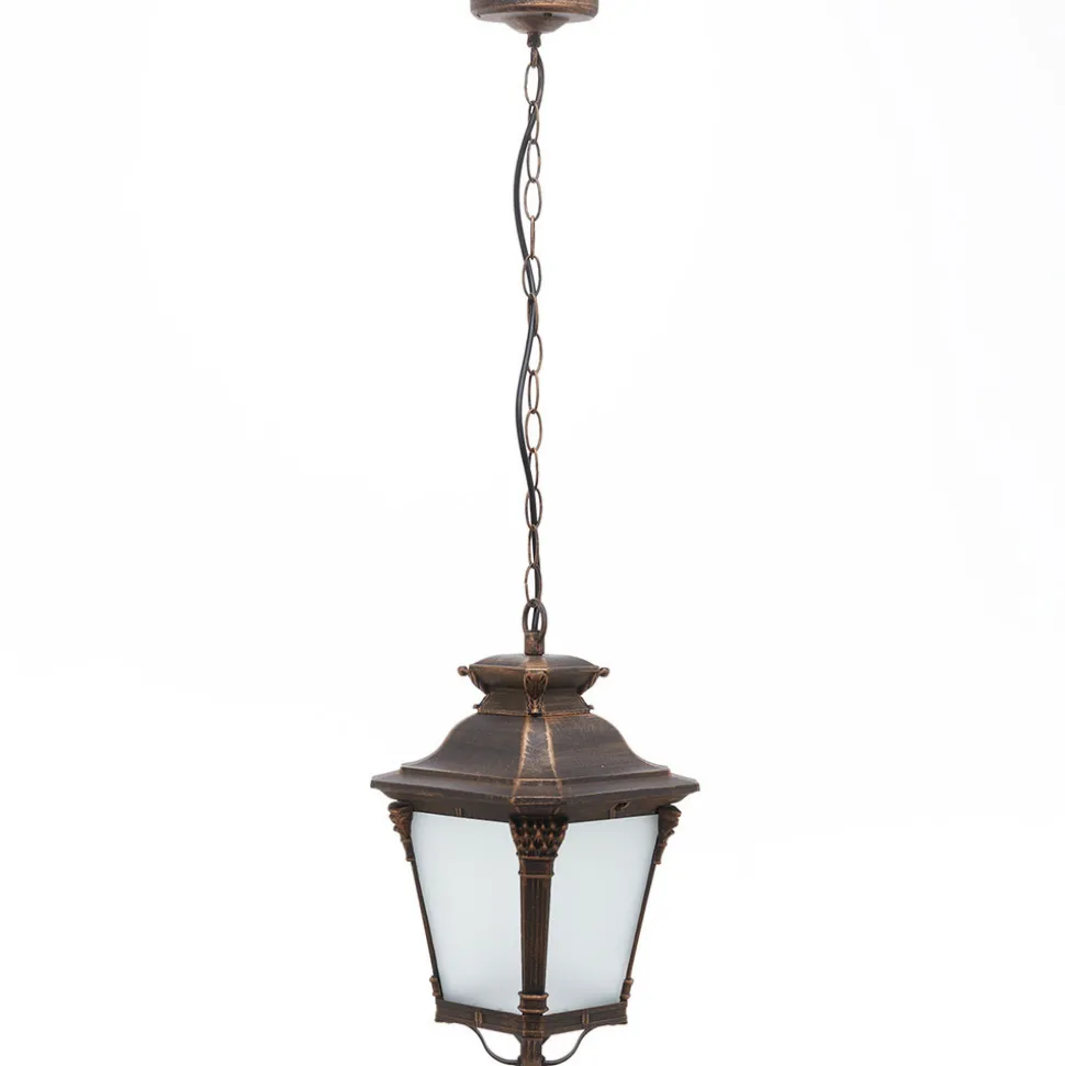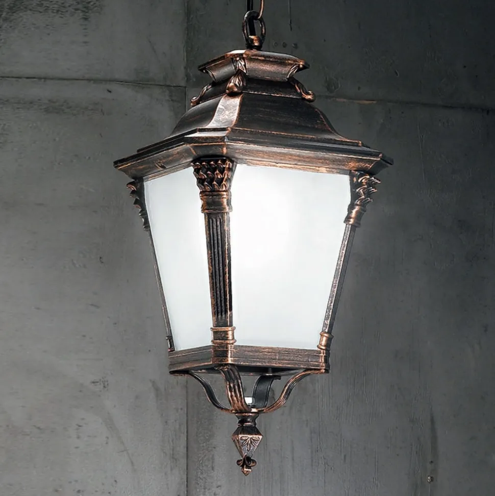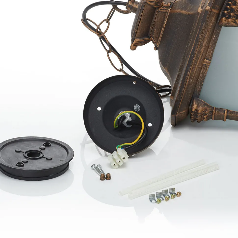 Aiko utendørs pendellampe – et eventyrlig utseende med mykt lys Denne pendellampen for utendørs bruk imponerer med sitt antikke utseende. Den er designet for utendørs bruk. Kombinasjonen av satengbehandlede skjermskiver og den detaljerte rammen skaper en eventyrlig og drømmende atmosfære. Bruken av frostede skiver hindrer lyset i å blende. Resultatet er at lyset gjenspeiler armaturens nostalgiske, autentiske aura ved å avgi en mykere glød.