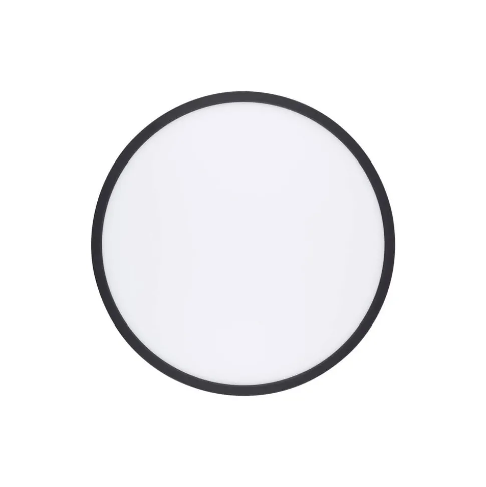 Rundt Aqua LED-panel til baderommet, med svart ramme Aqua LED-taklampen er utformet som et flatt utenpåliggende panel i rund form. Diffusoren er laget av satinert plast som gir et bredt lysbilde, og er omgitt av en svart metallramme. Takket være kapslingsgrad IP54 kan Aqua uten problemer brukes på baderom og vaskerom – Fargetemperaturen på lyset kan stilles inn før idriftsettelse (3 000 K / 4 000 K / 6 500 K) – Dimbar: bare trykk på veggbryteren i rask rekkefølge