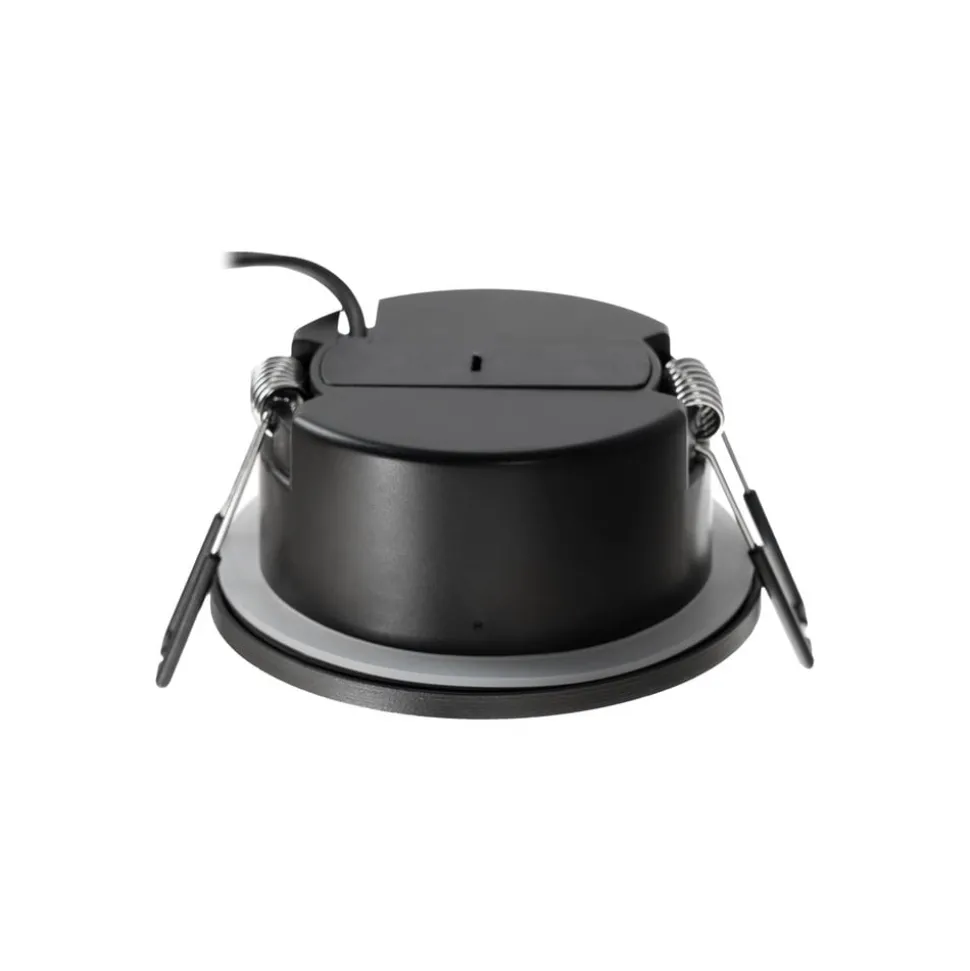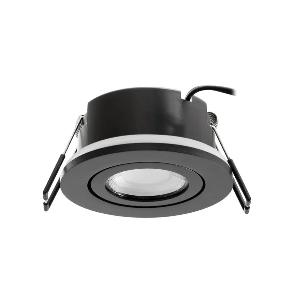 Moderne LED-downlight Eliar i støpt aluminium med kapslingsgrad IP65 Arcchio LED-downlight Eliar i svart er det perfekte valget for alle som er ute etter moderne og stilfull belysning. Med kapslingsgrad IP65 er den ideell for bruk i stuen, gangen, arbeidsrommet/kontoret eller utendørs. Den integrerte LED-lyskilden gir et energibesparende lys med lang levetid. Downlighten er svingbar og kan derfor justeres individuelt. Det følger ikke med en dimmer, men lysstyrken kan justeres ved hjelp av en ekstern faseavsnittdimmer. Downlighten bader alle rom i et behagelig lys og skaper en inspirerende atmosfære – Kan svinges 20° – Kan justeres individuelt