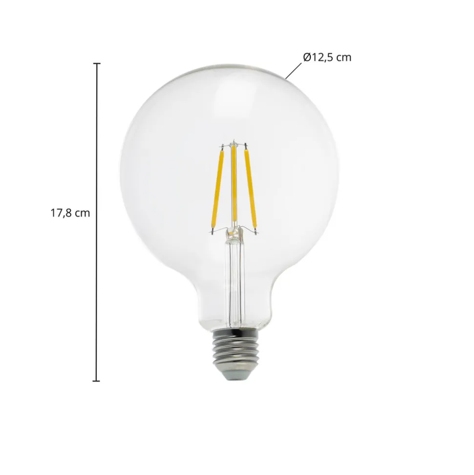 Denne LED-glødelampen har G125 globusform og er derfor større enn vanlige pærer. Dette gjør den spesielt egnet for åpne armaturer, som så kan suppleres med en optisk matchende lyskilde. Lampen har den spesielt gode energieffektiviteten klasse A og bruker dermed lite strøm sammenlignet med lysstyrken.