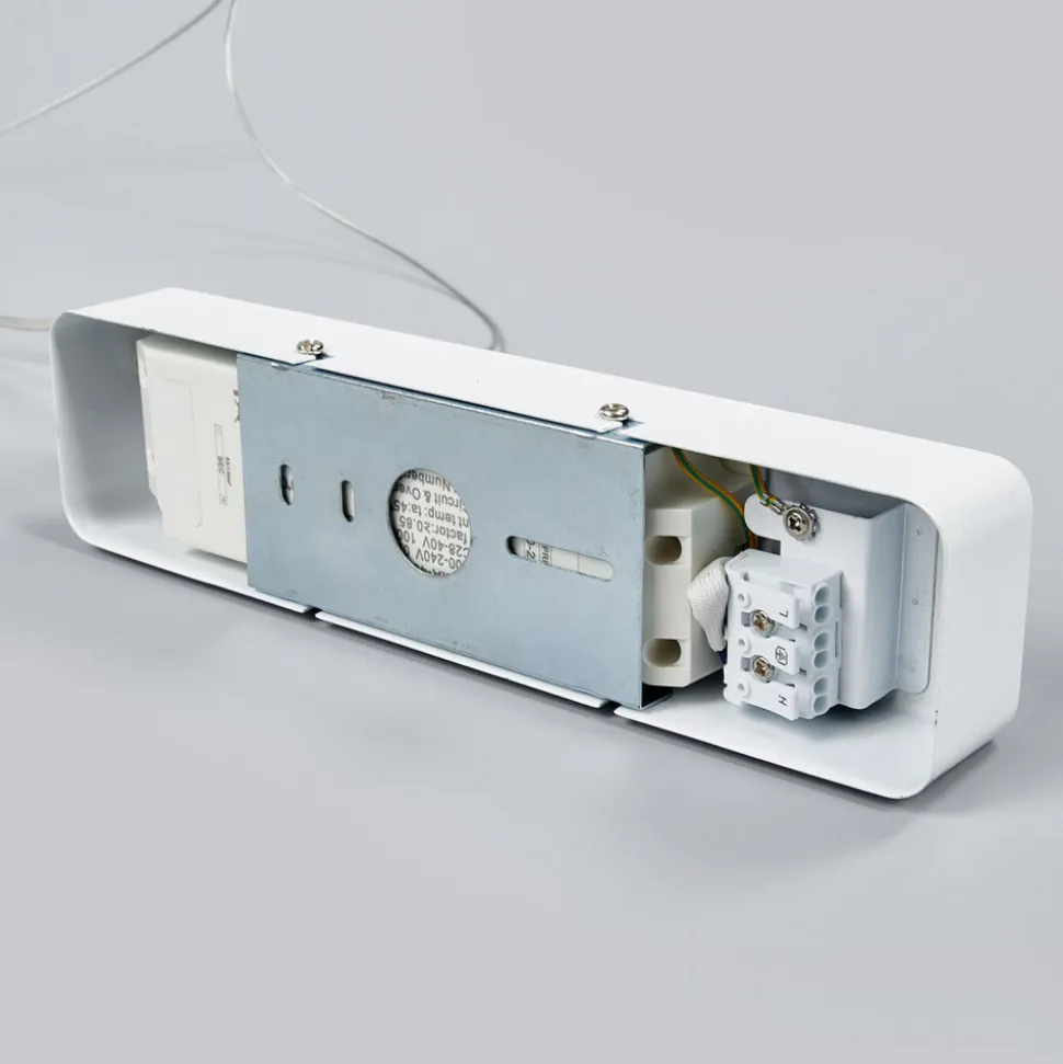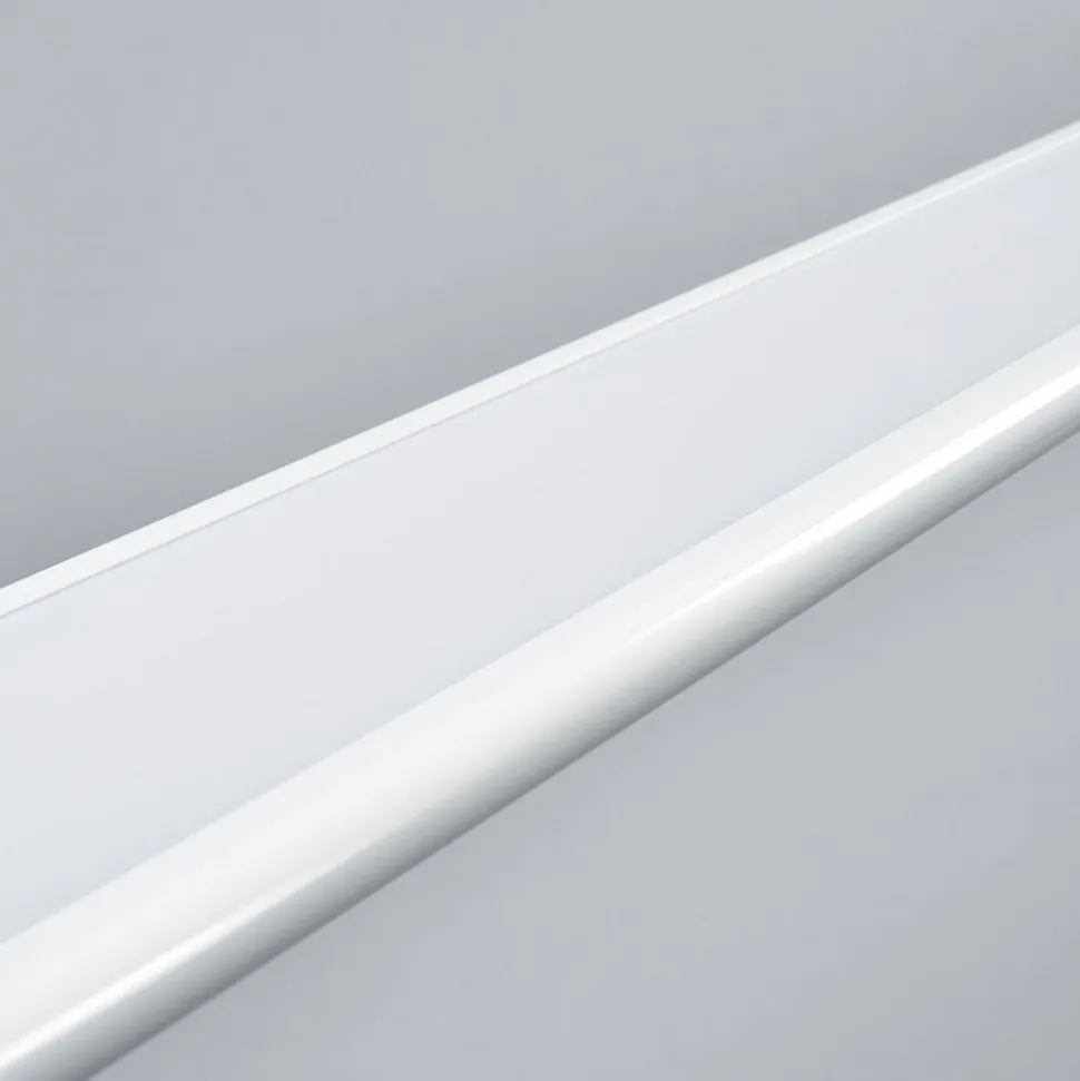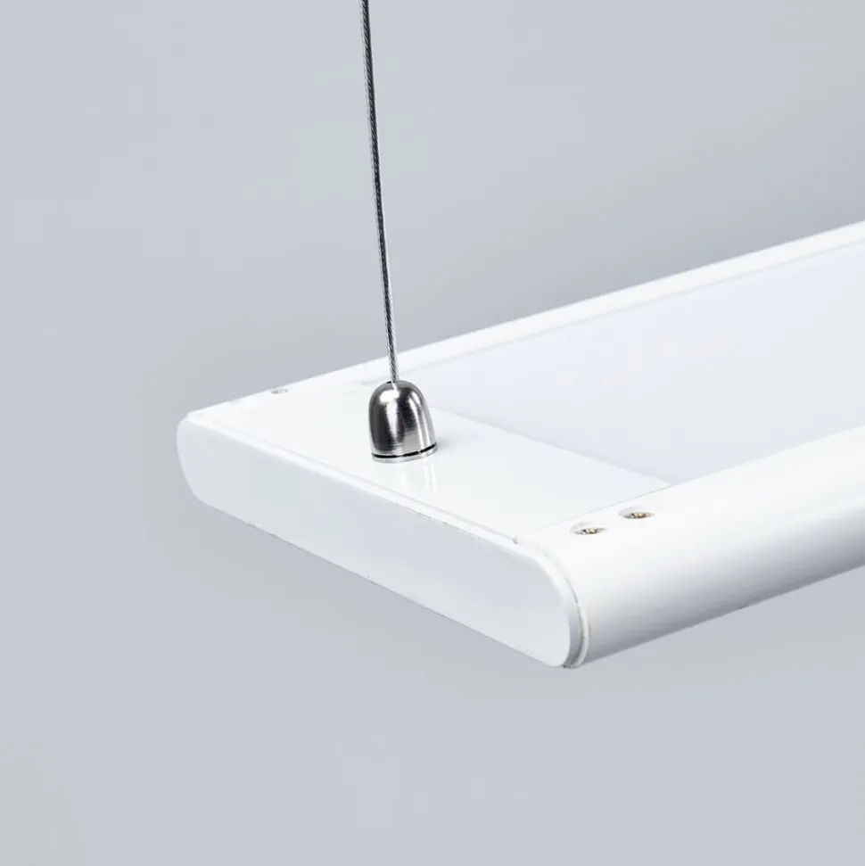 Hvit Samu LED-hengelampe til kontor med direkte-indirekte lysavgivelse og varmhvitt lys Samu LED-hengelampe til kontor er utstyrt med dimbare LED-lamper, slik at lysstyrken kan justeres med en ekstern dimmer. Den gir også en belysning som er tilpasset skjermarbeidsplasser, ettersom lyset sendes ut både direkte og indirekte, med 60 prosent av lyset rettet nedover og 40 prosent oppover. Kombinasjonen av direkte og indirekte lys gir et spesielt jevnt lysbilde og maksimal avlastning for øynene, slik at man kan konsentrere seg om arbeidet på kontoret i lengre perioder.