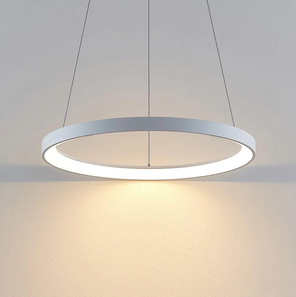 Ringformet LED-hengelampe Vivy med en hvit ramme – fin som spiseplassbelysning