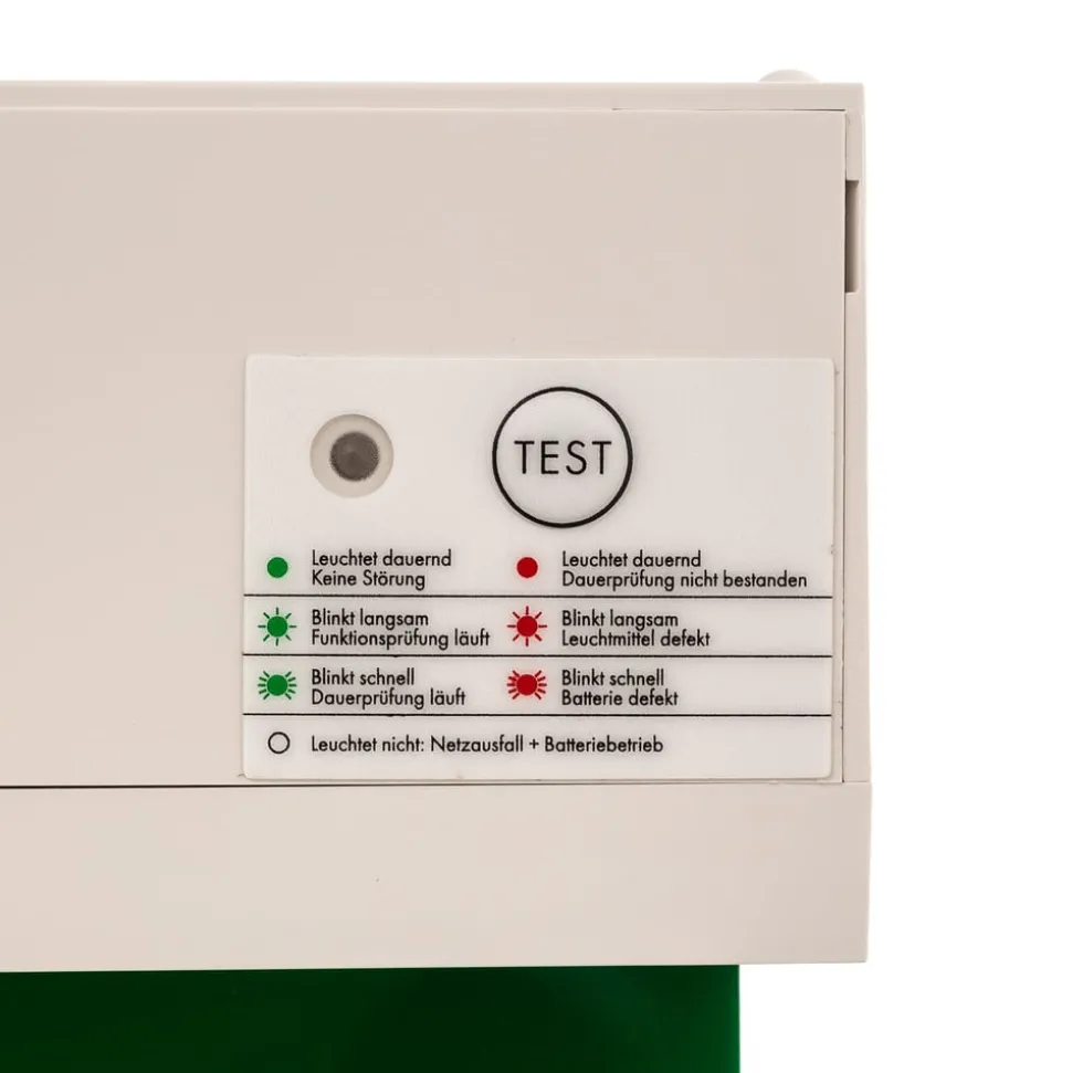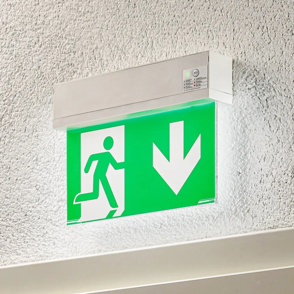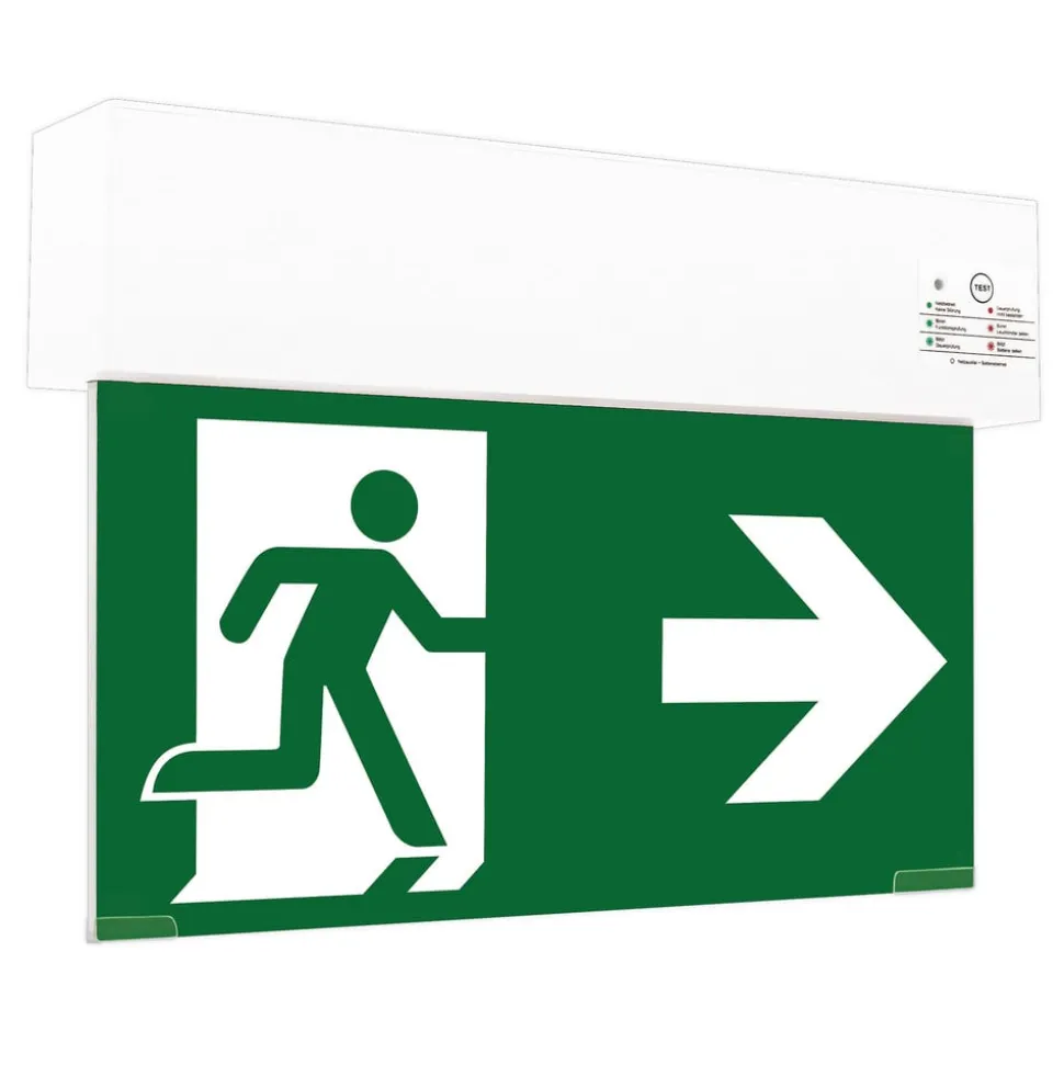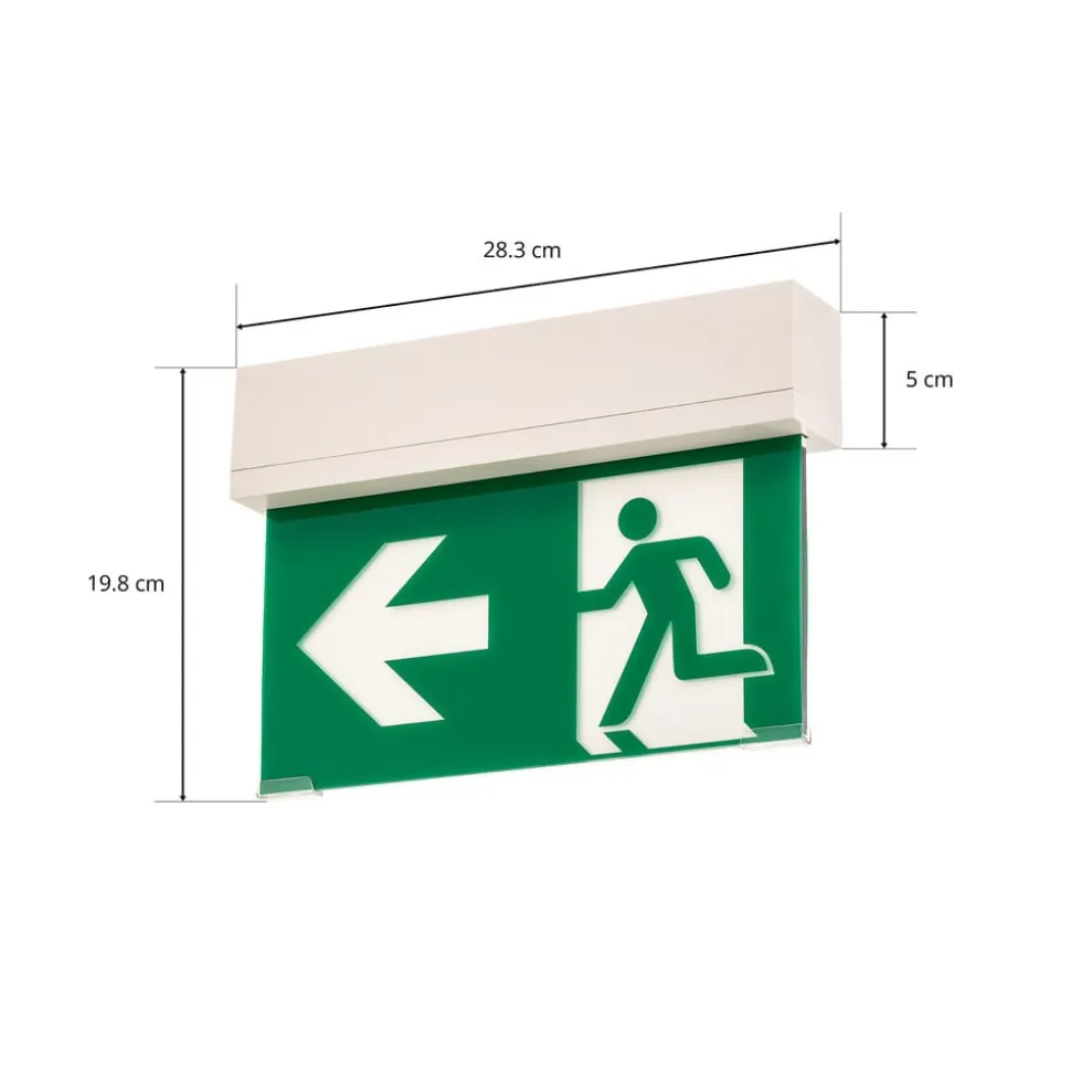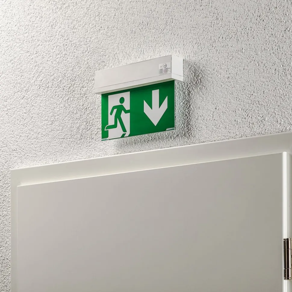 Batteridrevet LED-nødlys Nevian i plast og pleksiglass Nevian ser ut som et kjent nødlys og har den typiske grønne og hvite fargekontrasten. Den er laget av plast og pleksiglass og kan monteres i tak eller på vegg. Den har også en status-LED og en akustisk feilindikator som valgfritt kan gi informasjon om eventuelle feil på armaturen. Tekniske data – Detekteringsrekkevidde 27 meter – DIP-bryter for innstilling av forsyningsvarighet (3 timer eller 8 timer) – Inkluderer oppladbart batteri (LiFeP04)