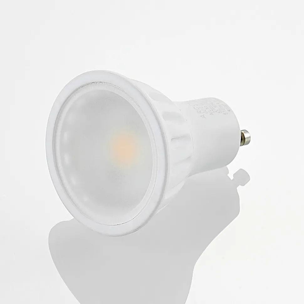 Dimbar GU10 LED-reflektor 7 W med varmhvit lysfarge 2700K Denne LED-reflektoren kjennetegnes av en bred lysvinkel på 100° og mulighet for dimming. Det frostede dekselet reduserer blending og sikrer en homogen lysfordeling. Et energieffektivt alternativ til konvensjonelle halogenreflektorer – frostet deksel – bred avstrålingsvinkel på 100° – dimbar med mange kommersielt tilgjengelige dimmere, f.eks. Philips SED 200 A, Gira 217400, Jung 3904 REGHE m.fl.