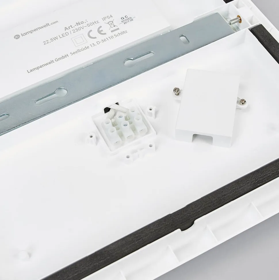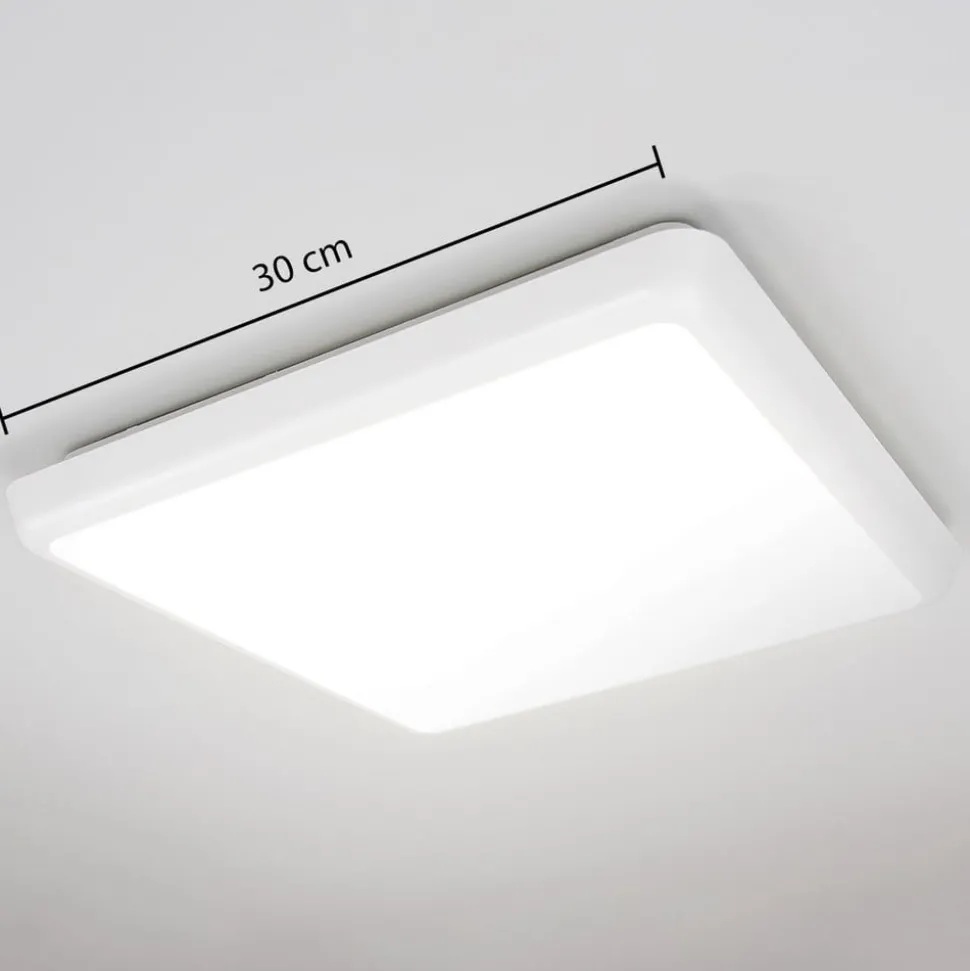 Kantet Augustin taklampe med et enkelt utseende og universalhvite LED-lamper, IP54 Augustin LED-taklampe er en funksjonell lyskilde som er så visuelt diskret at den kan brukes på så mange forskjellige måter som mulig. Den har en enkel, kantet form, og i tillegg til den hvite rammen har den en polykarbonatskjerm med hvit overflate som sørger for jevn fordeling av LED-lyset. Augustin kan selvfølgelig også brukes i private hjem, men den egner seg også som teknisk belysning for kommersielle formål og offentlige bygninger. Det bør nevnes at de energibesparende LED-lampene gir et sterkt lys som ikke er forbundet med høyt energiforbruk, men er kombinert med lav effekt. Kapslingsgraden IP54 gjør at LED-taklampen også kan brukes i områder der det kan bli fuktig, da den gir tilstrekkelig beskyttelse mot vann.